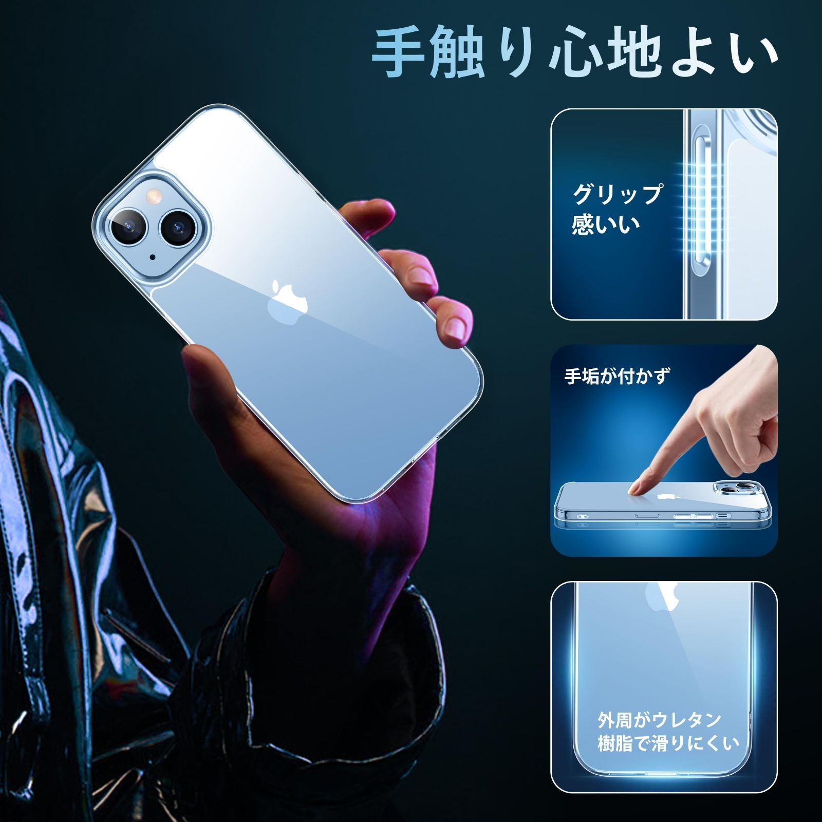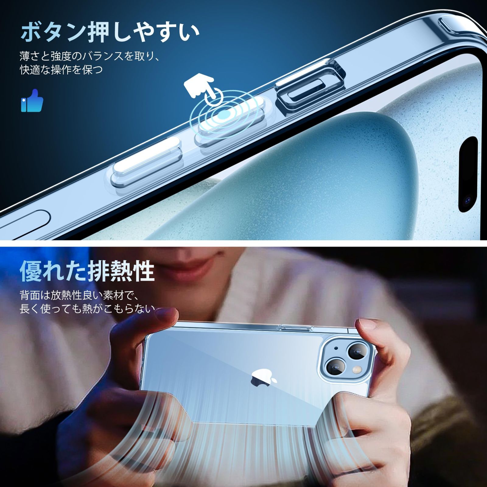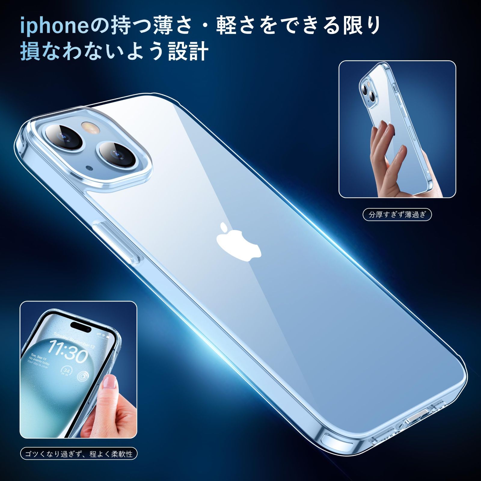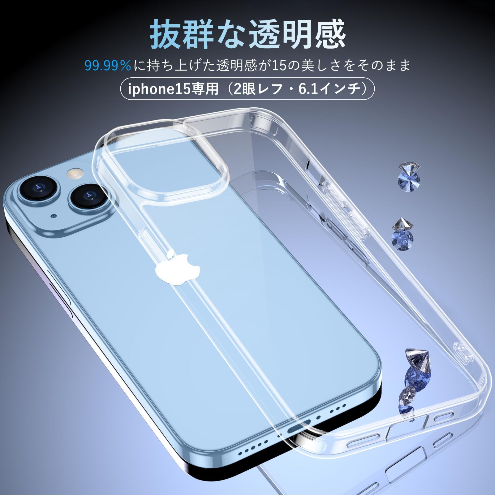 【高級感漂う・透明感抜群】 99.99%に持ち上げた透明感がiPhone15の美しさをそのまま。厳選した高透明度、更に耐黄変に強い特殊なポリカーボネート素材を採用、指紋がつきにくい・黄ばんでなく正真正銘のクリア!本来の崇高な美しさと高級感を損なわなく、いつものスマホに上品さをプラス。