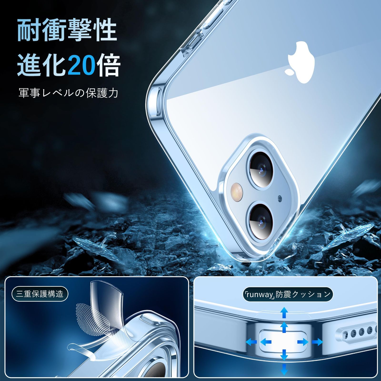 iphone15 ケース クリア 耐衝撃 カメラレンズ保護付き アイフォン15ケース 米軍MIL規格 耐久性 アイホン15 スマホケース 黄ばみ防止 ワイヤレス充電対応 SGS認証 カバー 透明 6.1インチ XIWXI