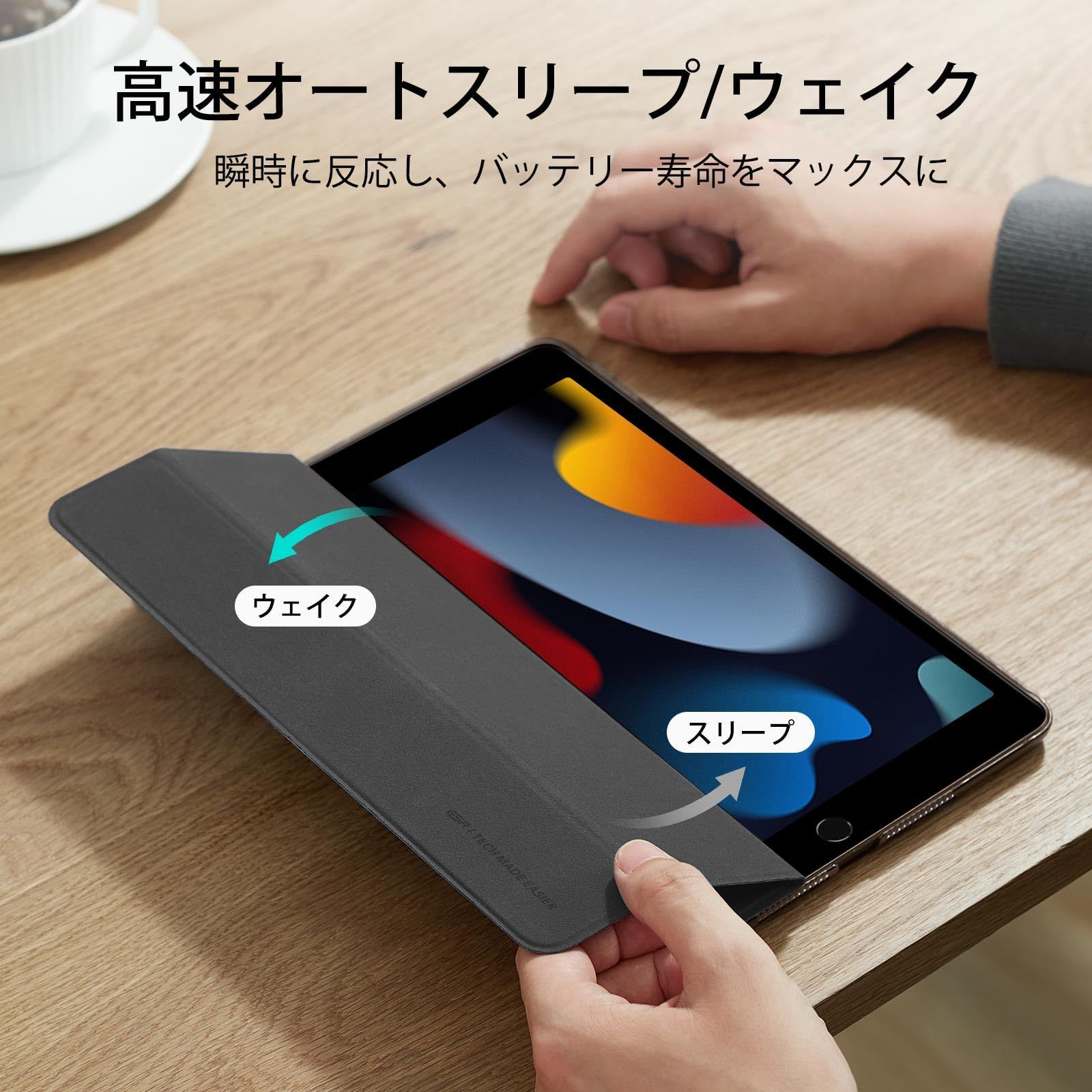 ESR iPad 9世代 ケース ipad カバー 第9/8/7世代通用 (2021/2020/2019モデル) 10.2インチ 半透明 指紋防止 三つ折りスタンド オートスリープ/ウェイク機能 薄型 軽量 傷防止 耐衝撃 ハードカバー ブラック