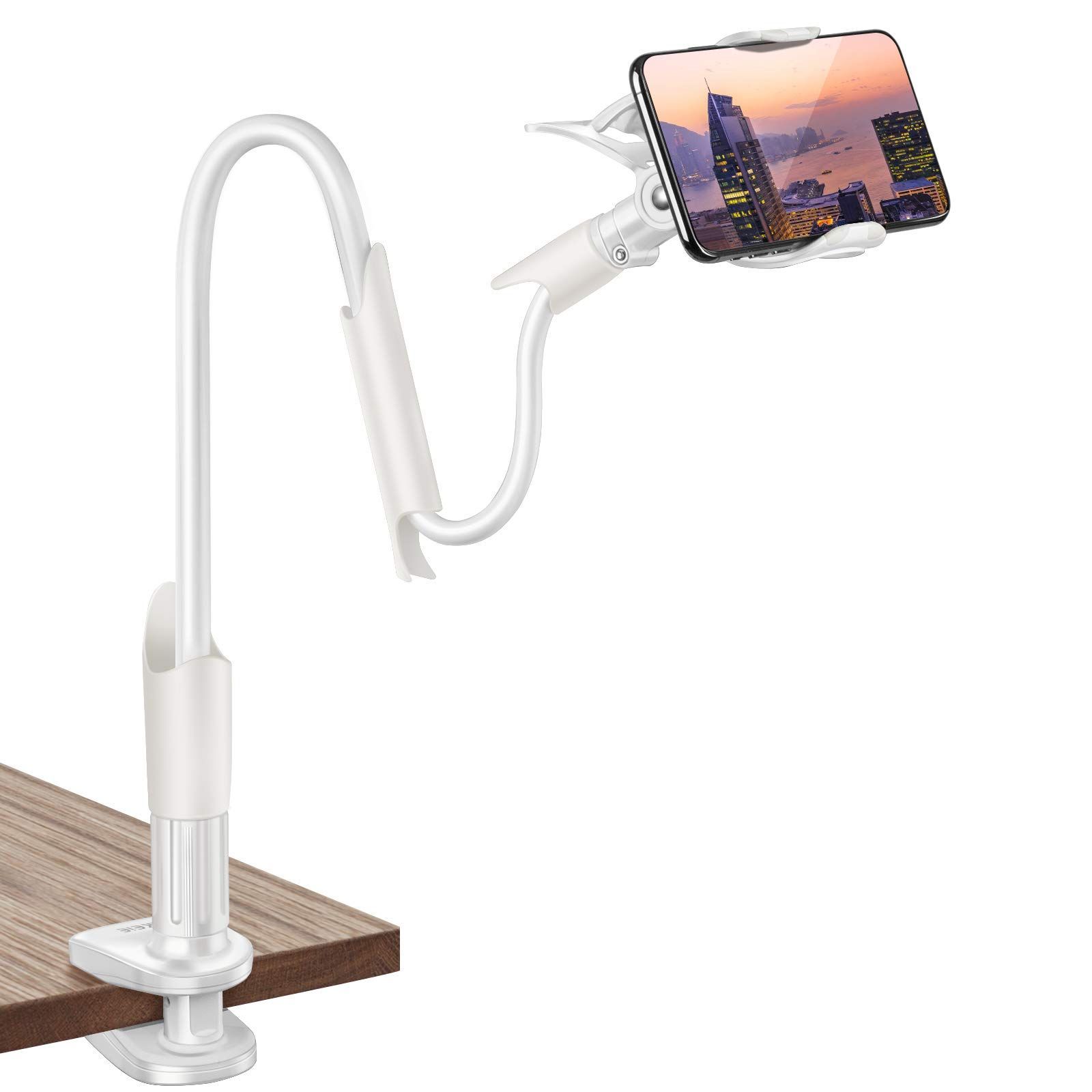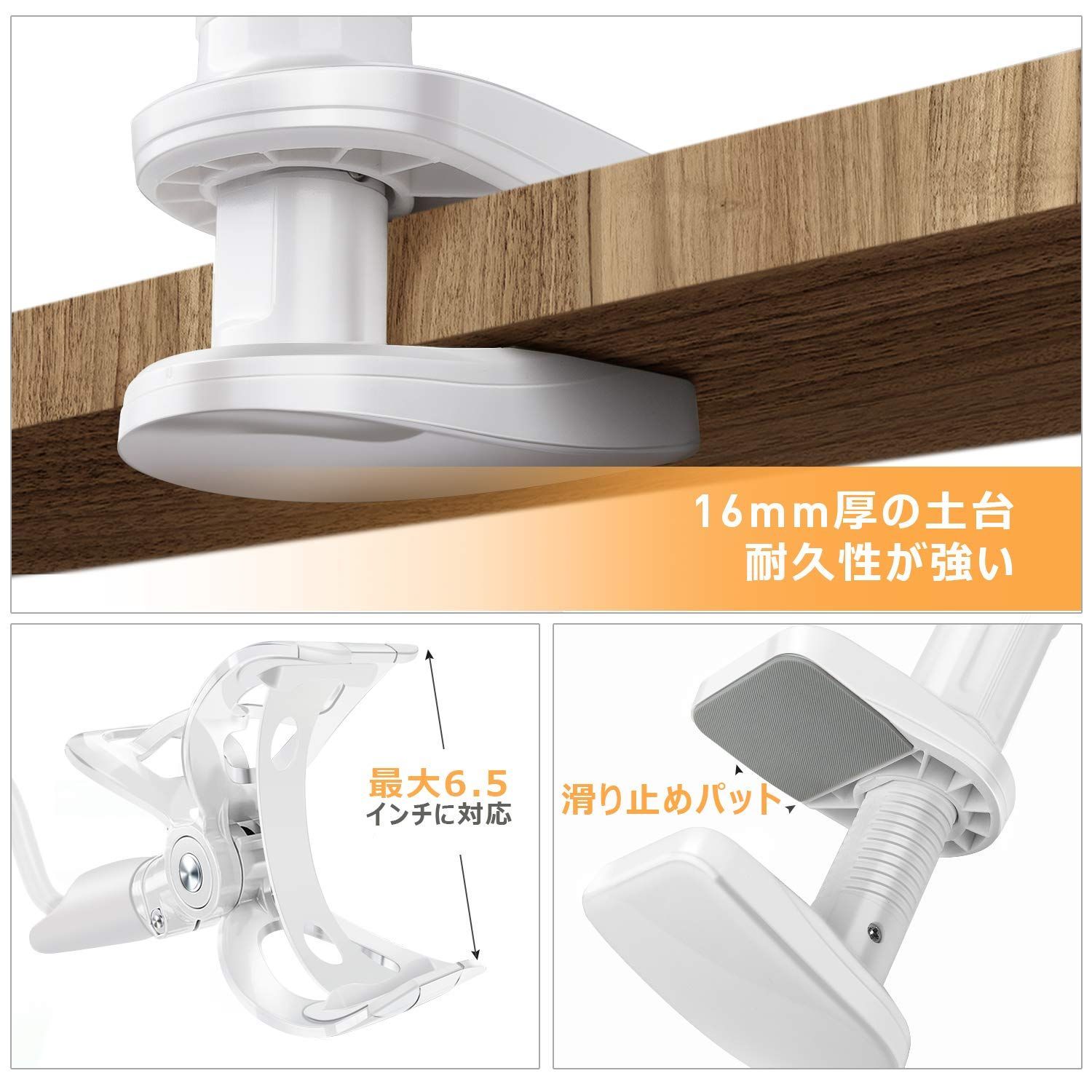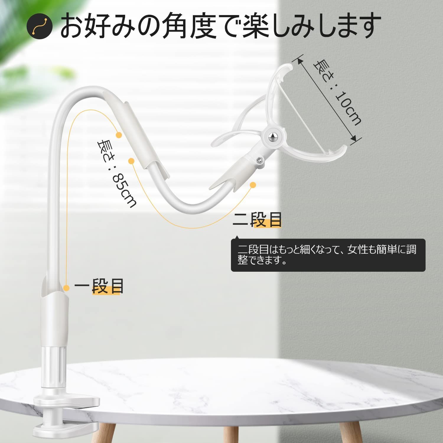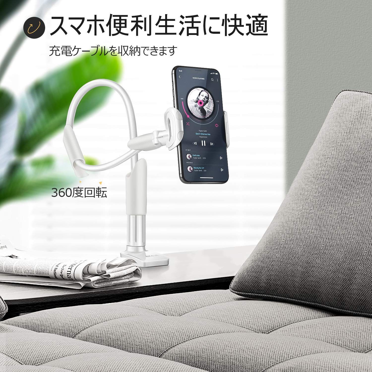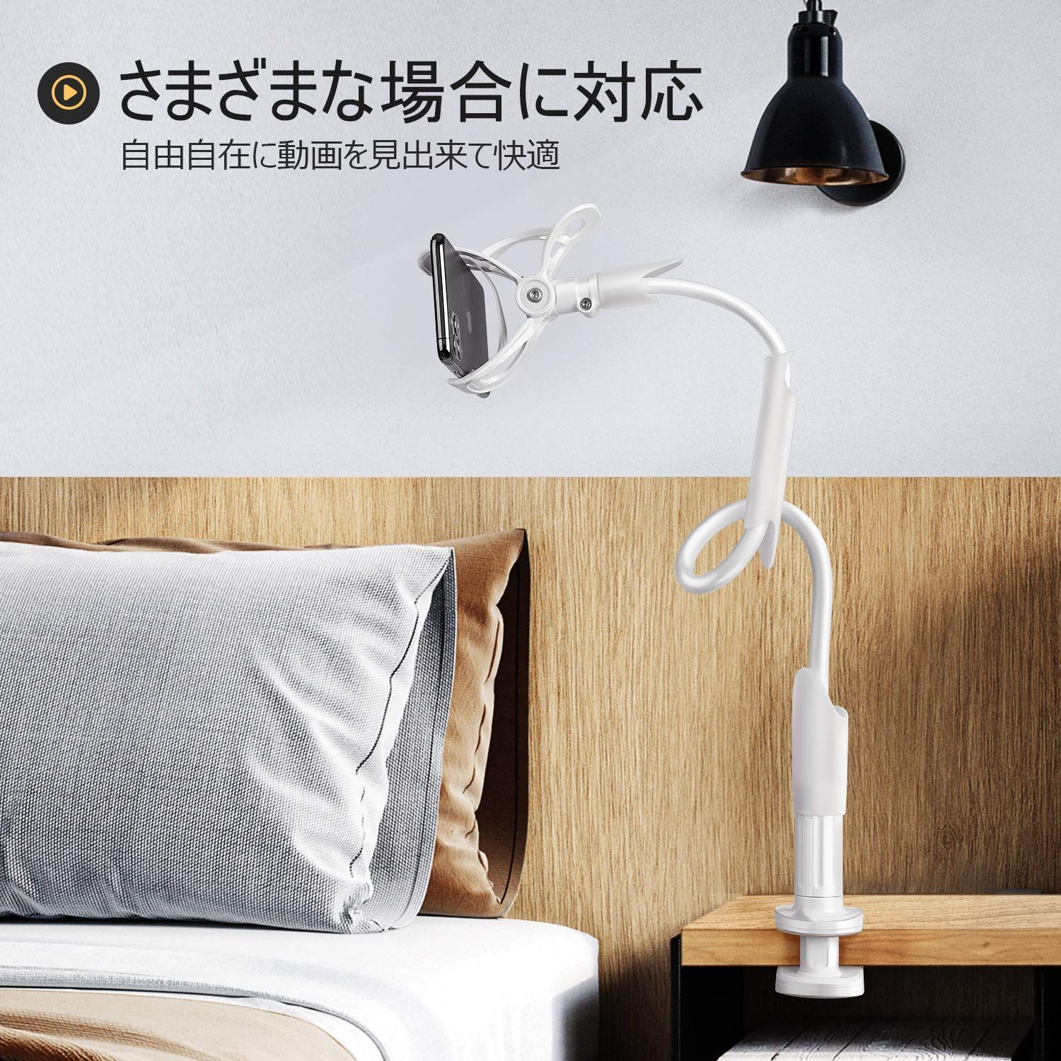 スマホアーム クリップ フレキシブルスマホアーム スマホスタンド アーム スマホホルダー クリップ 寝ながらベット用 スマホホルダー ベッド フレキシブルアーム 寝ながらスマホスタンド 土台強化 2段調節 柔軟自由調節 硬くない 3.5-6.3インチスマホに対応 (ホワイト)