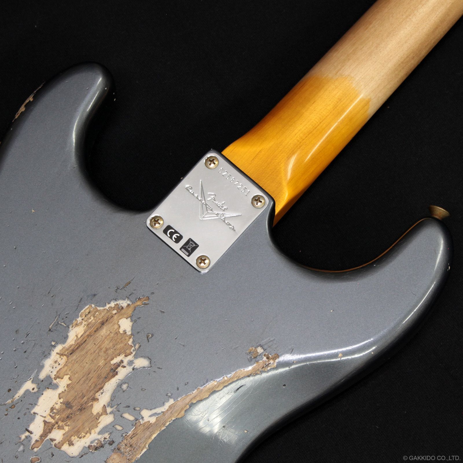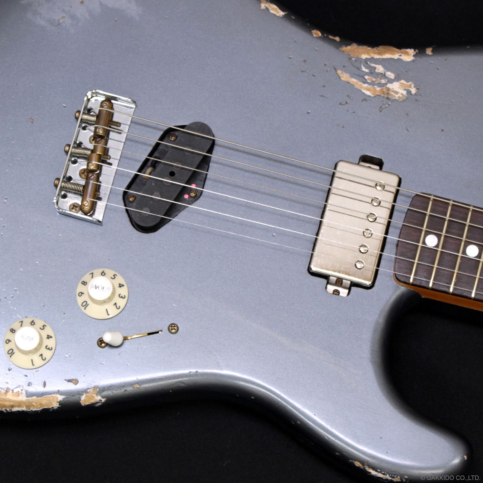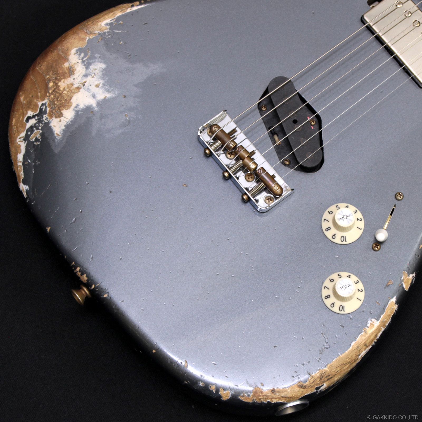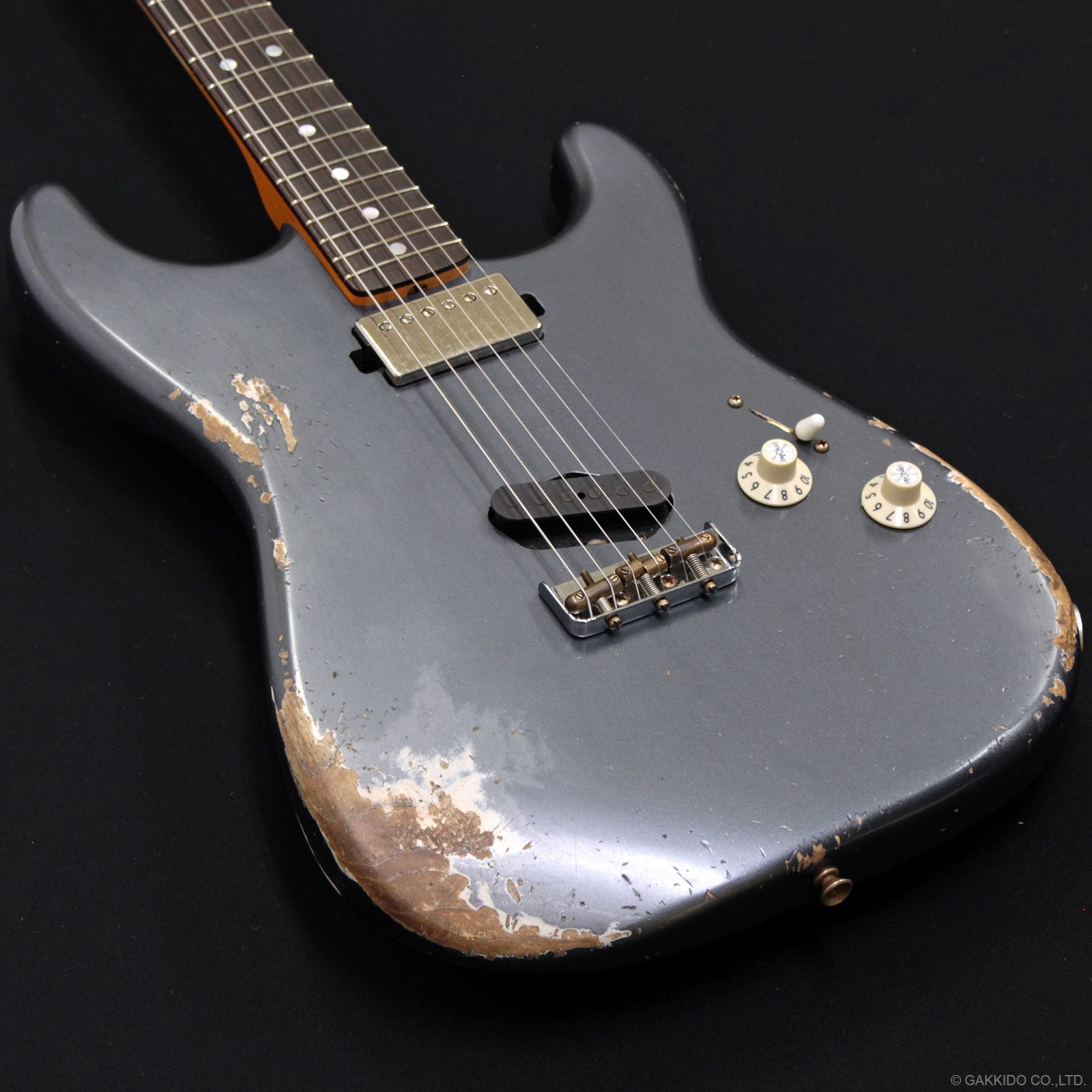カラーはエイジド・チャコール・フロスト・メタリックのヘヴィーレリック仕上げ。幾多のギグを生き抜けてきたかのような、ステージ映えバツグンの非常にロックでクールな1本です。超軽量2.91kg!