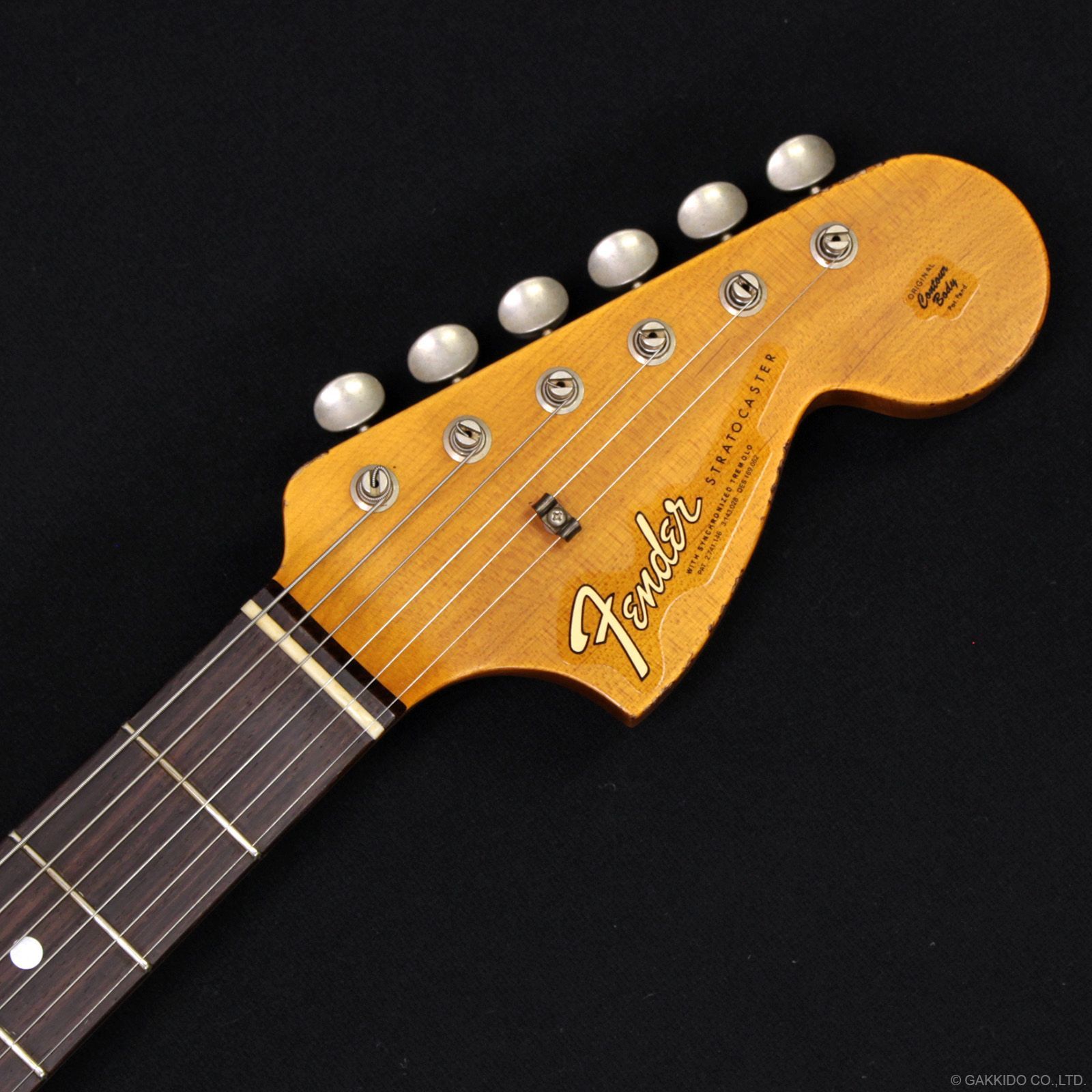 シーム(継ぎ目)がセンターではなく、あえてトレブル側(1弦側)にずらされた、厳選された2ピース・アッシュボディに、'66オーバルCシェイプ・柾目メイプルネック&ラウンド貼りローズウッド指板をボルトオン。'66 Stratocaster風のラージヘッド。指板は9.5〜12.0インチのコンパウンド・ラディアスです。