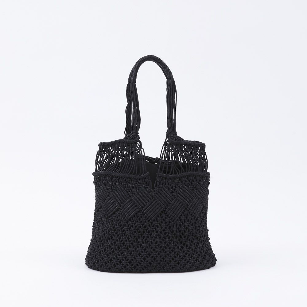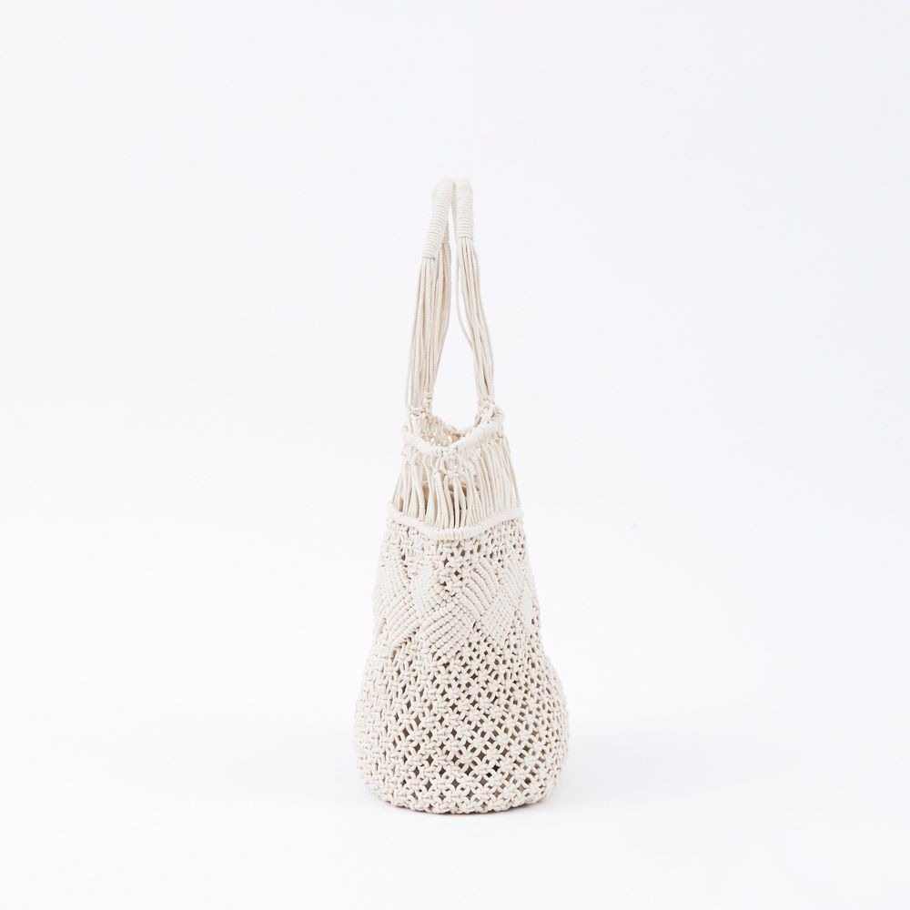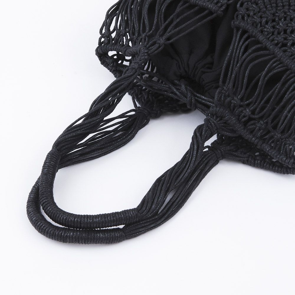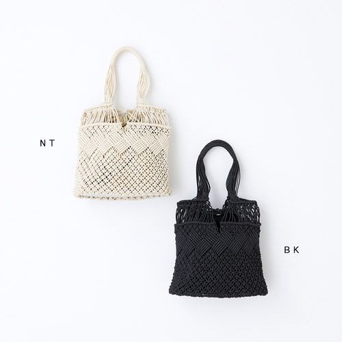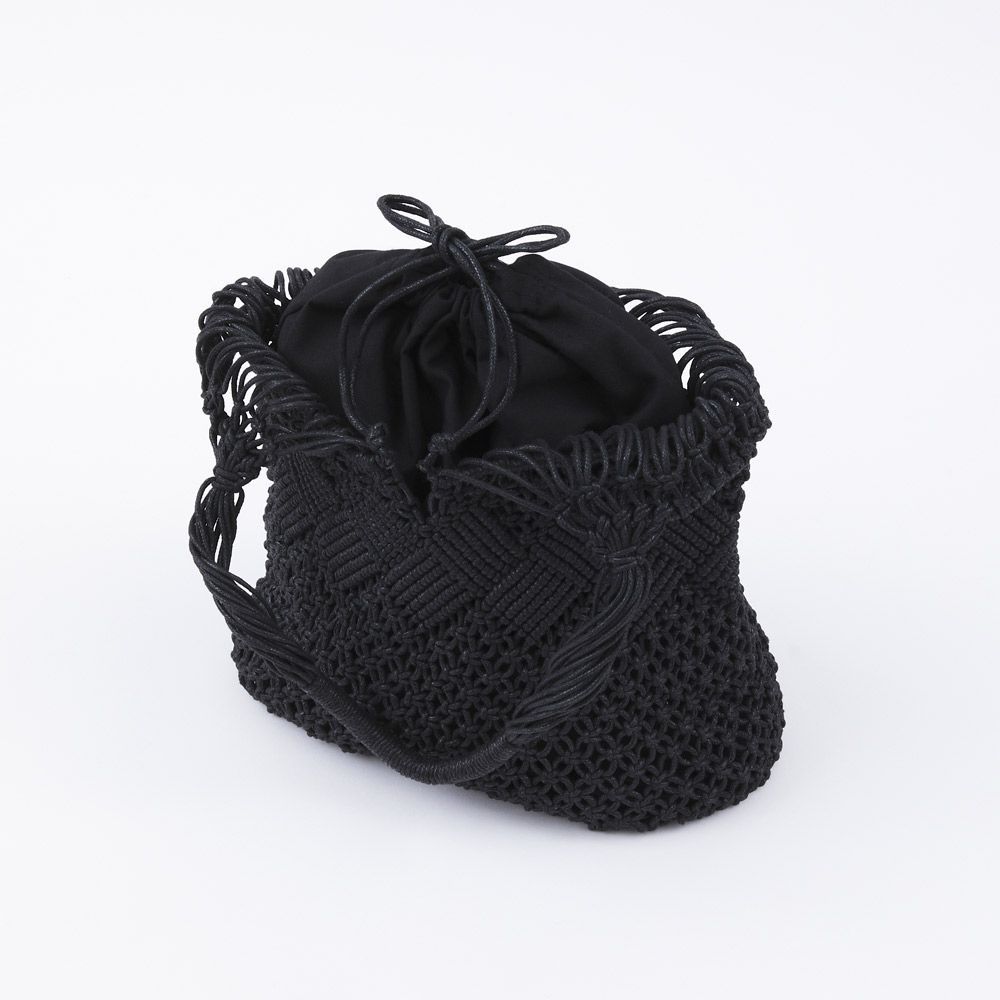 細いコットンコードを全面に編み込み、ハンドメイドの技術が光るアイテムです。