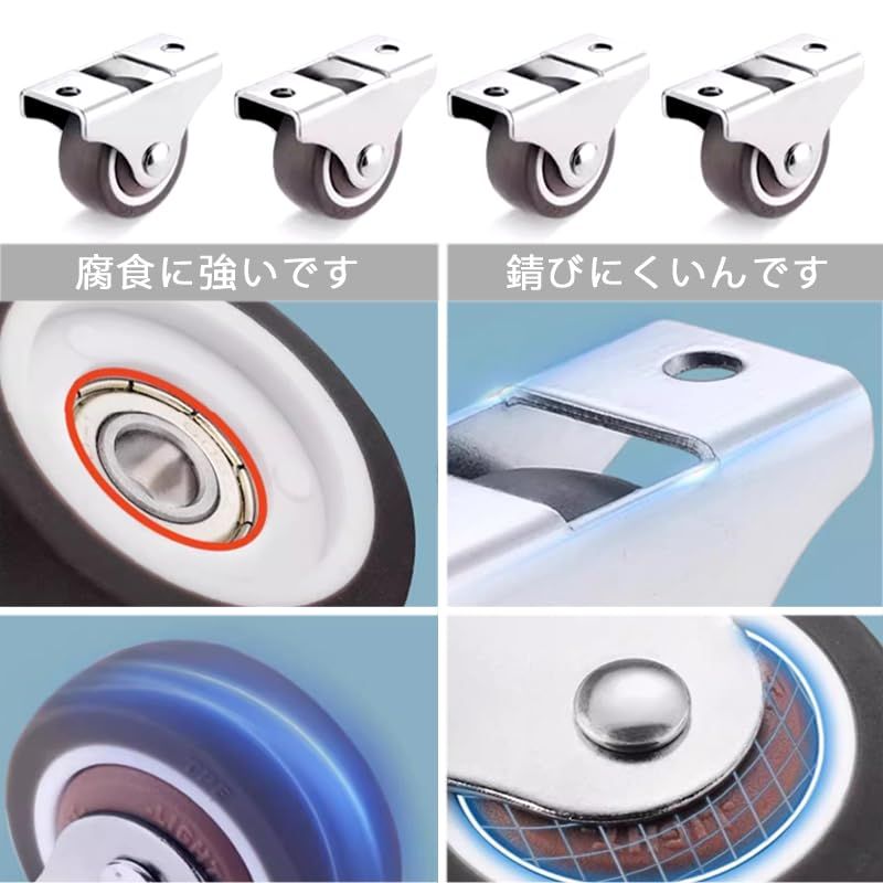 【用途】産業用アプリケーション、学校、トロリー、植物スタンド、オットマン、本棚、ワークベンチ、おもちゃ箱の小型機器や小型スペース家具用の完璧なキャスターに最適です。使用シーンは多岐にわたり、様々なニーズに対応できます。