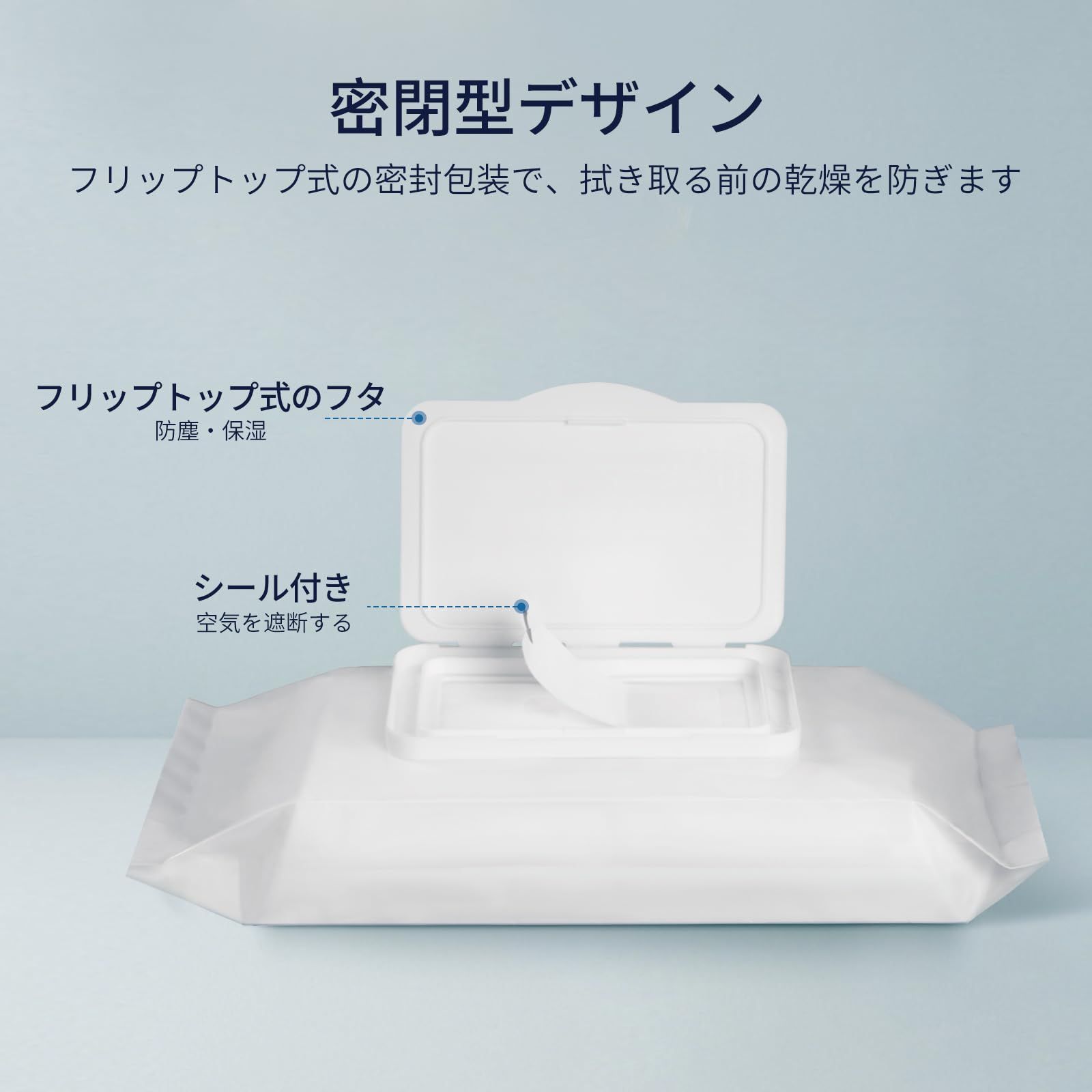 密閉型デザイン:パッケージには密閉型デザインを取り入れ、フリップトップ式の蓋とシールの組み合わせで、防塵、保湿性に優れ、ワイプの乾燥を効果的に防げます。