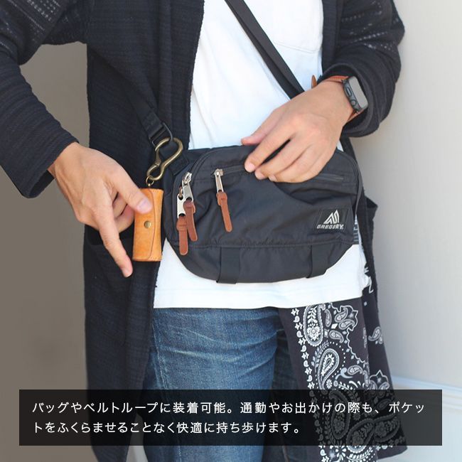 ・リュックやビジネスバッグ、ベルト穴やスマホショルダーにワンタッチで装着可能。