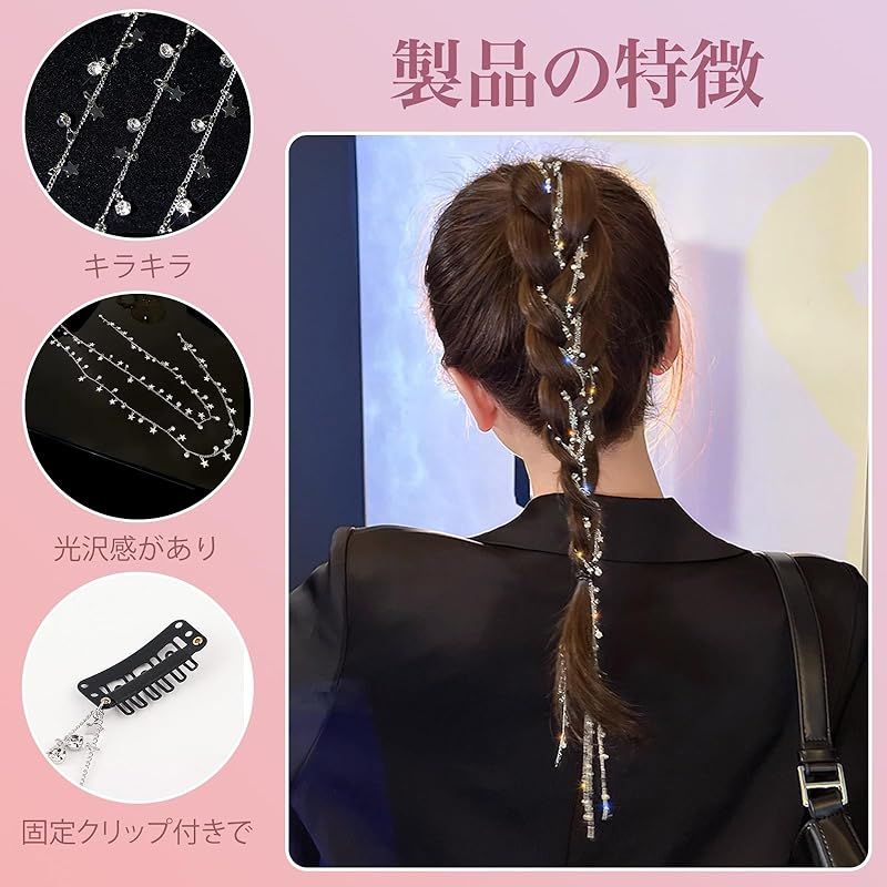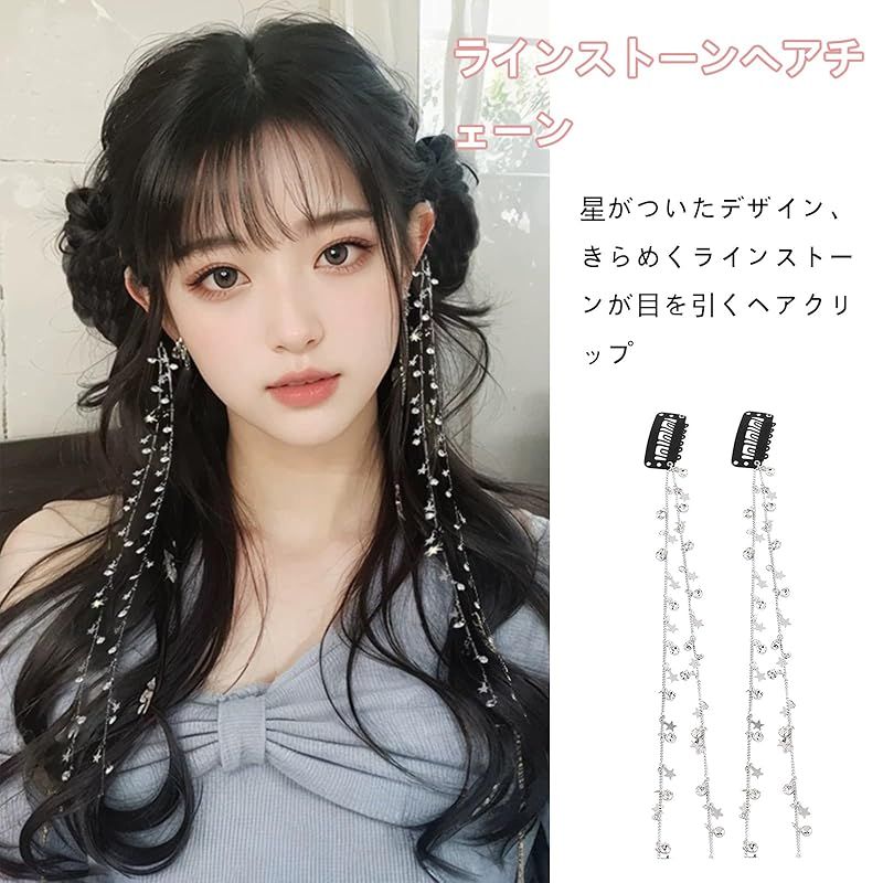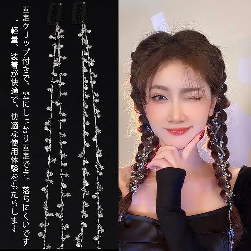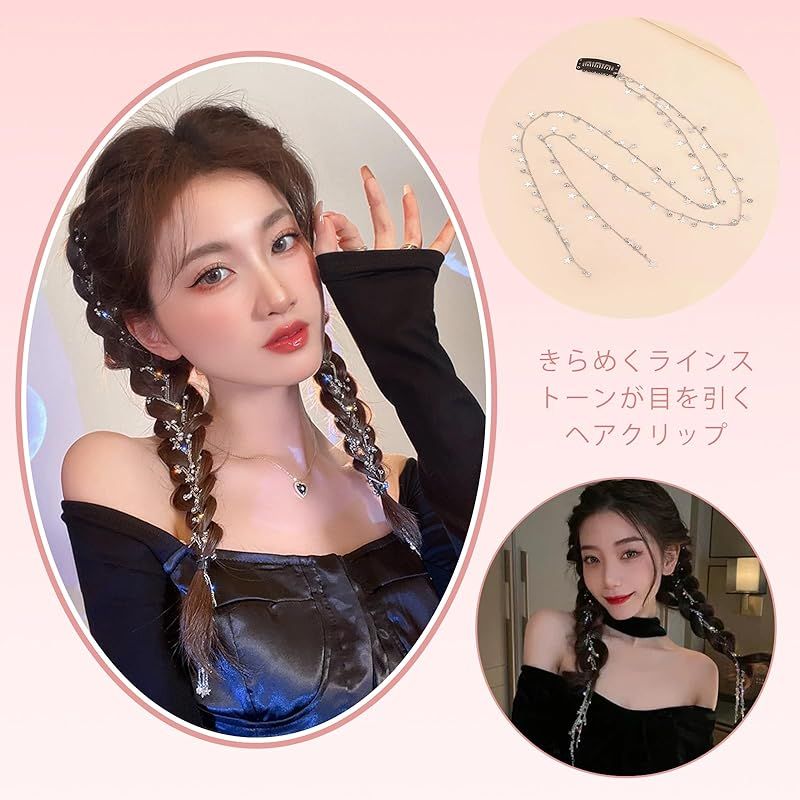 商品名:YANHUILAY ラインストーンヘアチェーン【2個セット】三つ編み用ヘアチェーン キラキラ エクステ 髪飾り ヘアアレンジ パーティー 小物 簡単取付け 文化祭 体育祭 結婚式 披露宴 卒業式 入学式 撮影 写真 子供 大人用 レディース