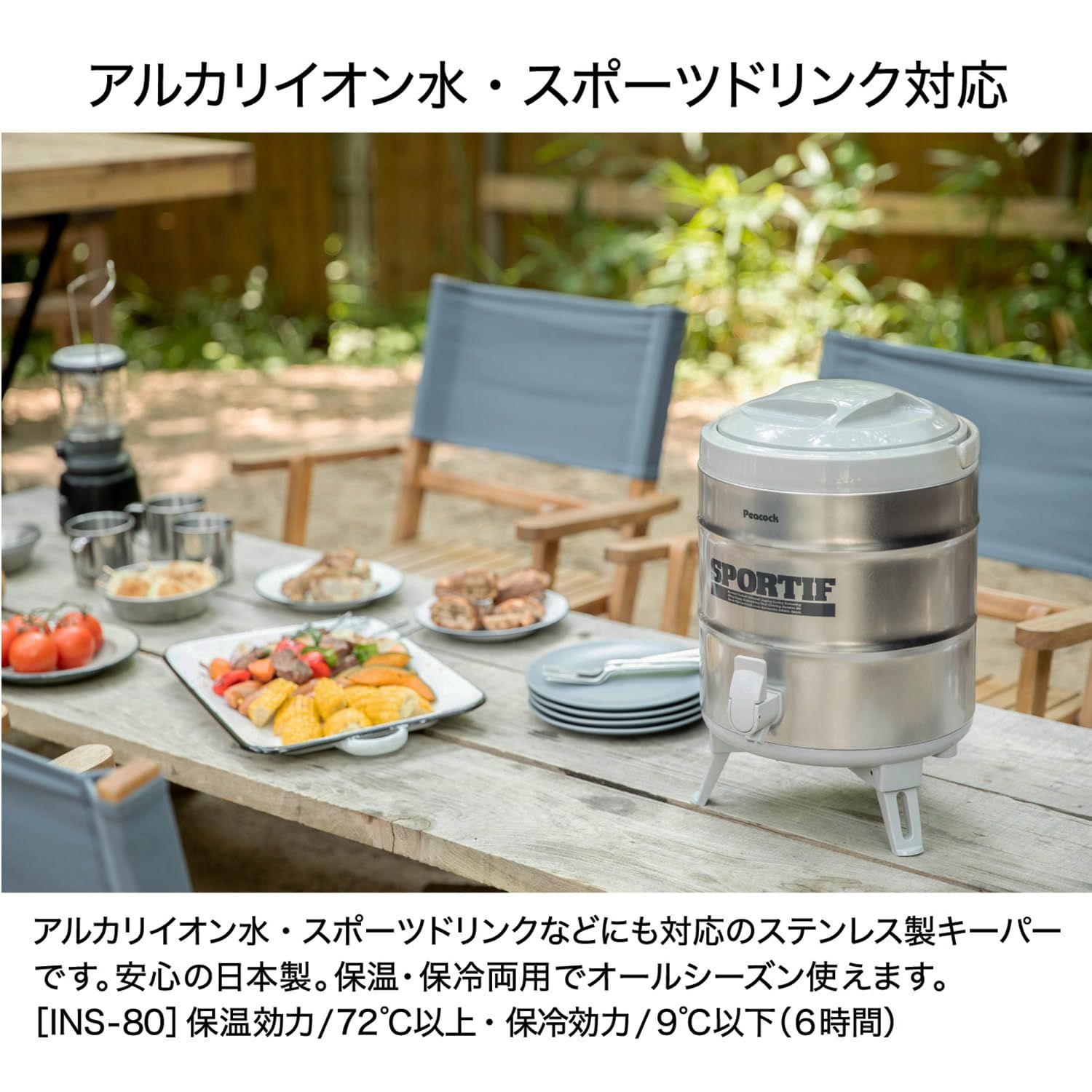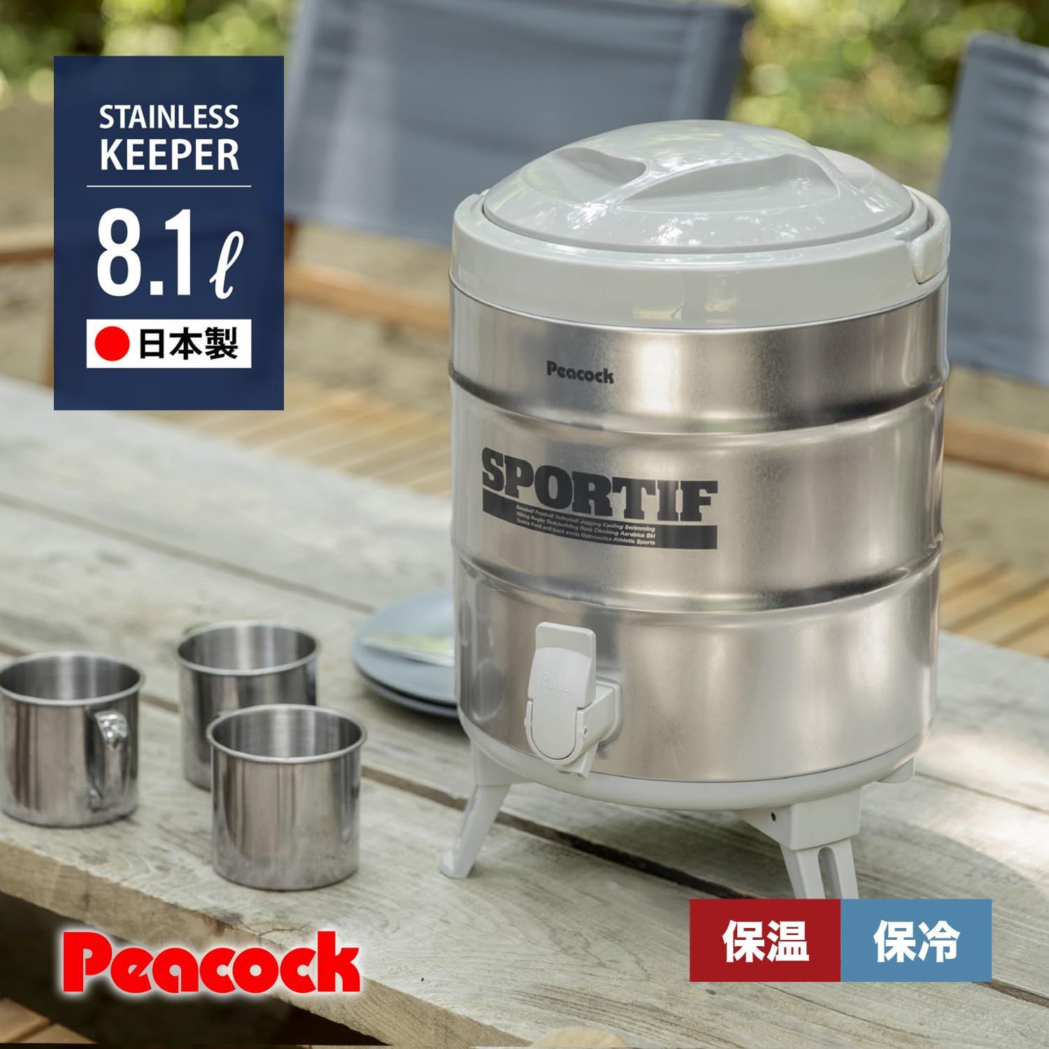 ピーコック魔法瓶工業(The-peacock) ピーコック ウォータージャグ 8.1L 日本製 保冷 保温 キーパー アウトドア キャンプ 大容量 ジャグ タンク ステンレス グレー 8L INS-80K H