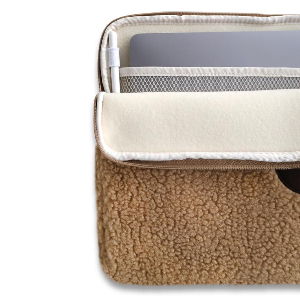 【高級ダンブリング生地使用】 表地には、ふわふわで暖かい手触りのダンブリング生地を採用。耐久性に優れ、長期間使用しても型崩れすることなく、ノートパソコンをしっかり保護します。