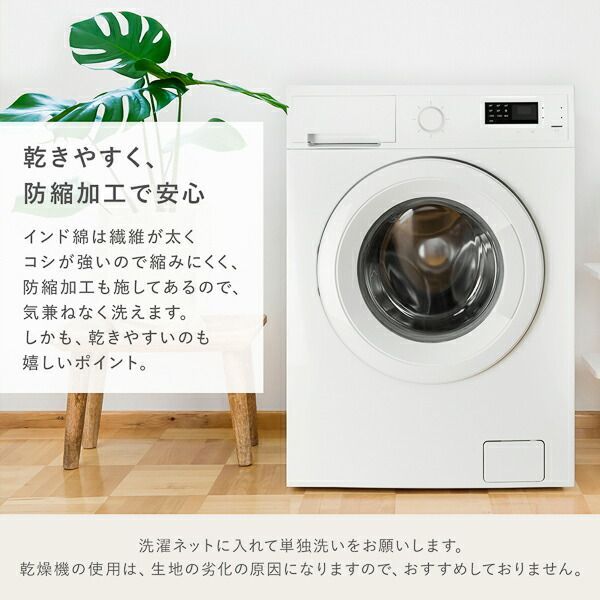 防縮加工も施してあるので、気兼ねなく洗えます。
