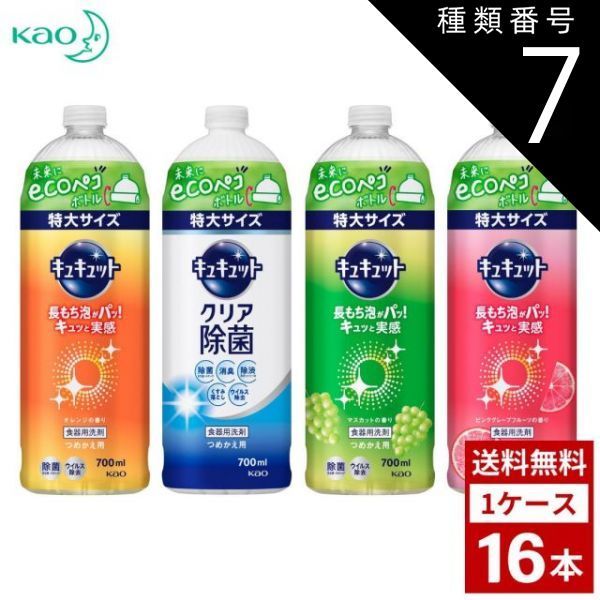 種類7:ピンクグレープフルーツ/1個 キュキュット 各種 詰め替え用 700ml 特大サイズ 詰め替え つめかえ用 洗剤 洗濯 まとめ買い 箱買い 詰め合せ 送料無料