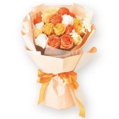 【新品・3営業日で発送】ソープフラワー プチ・レーヌ 6カラーブーケ(9個アソート)GR/OR/PK/PU/RD/YE (S-139OR)【入数:9】