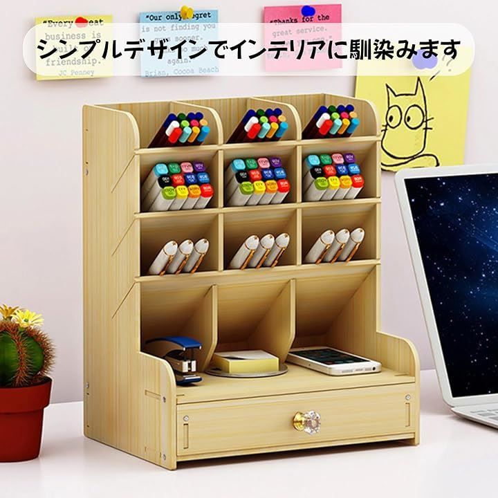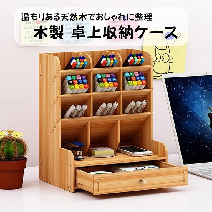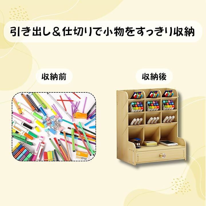 「効率的な整理整頓」この木製卓上収納ケースは、デスク周りの小物をすっきりと整理整頓するための理想的なソリューションです。