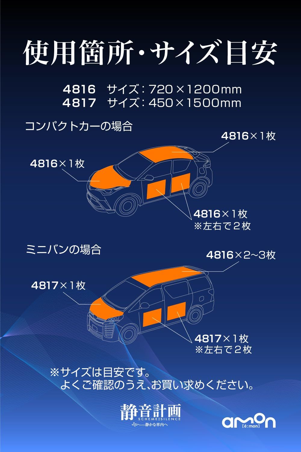 【限定】エーモン(amon) 車内を静かにする静音計画 エンジンルーム静音シート ミニバン用 約450×1500mm 厚さ約4mm 4817