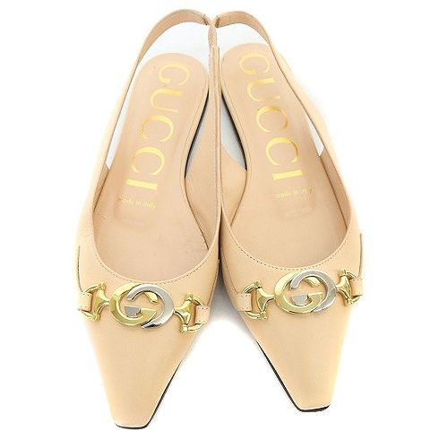 【商品名】グッチ GUCCI インターロッキングG フラットパンプス ポインテッドトゥ 35 22cm ピンクべージュ 626725 /SR34
