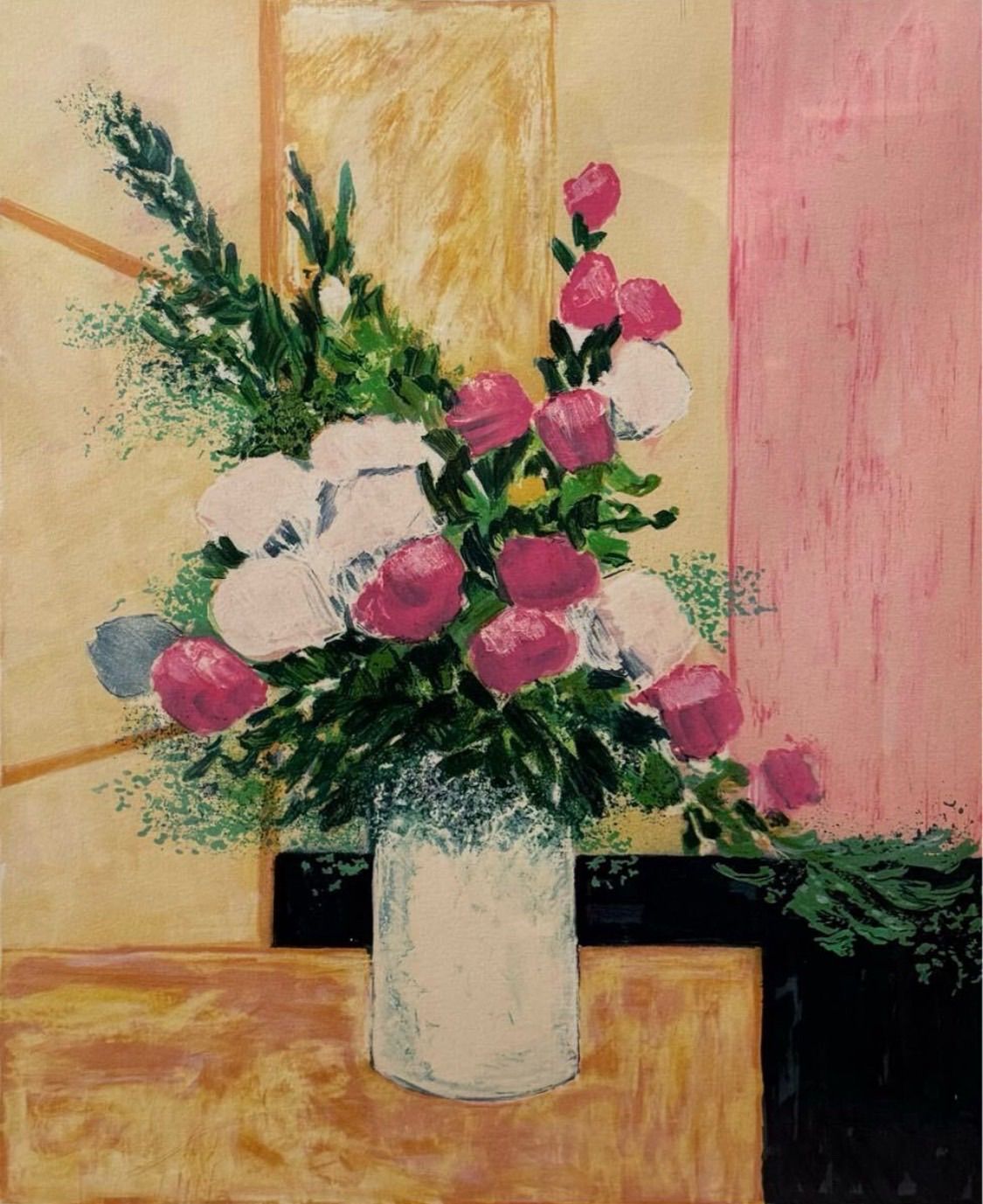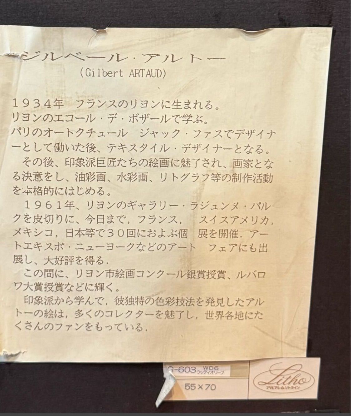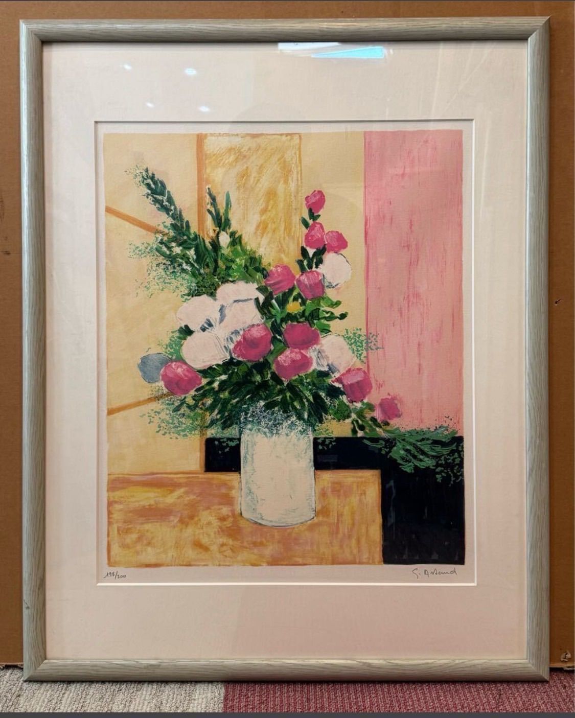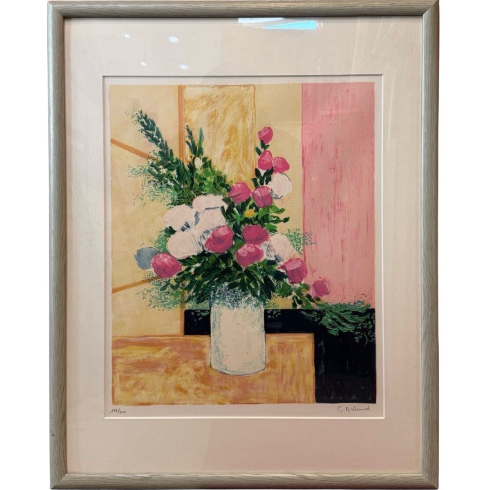 ジルベール・アルトー 「ピンクと白色の花」リトグラフ 直筆サイン入り フランス