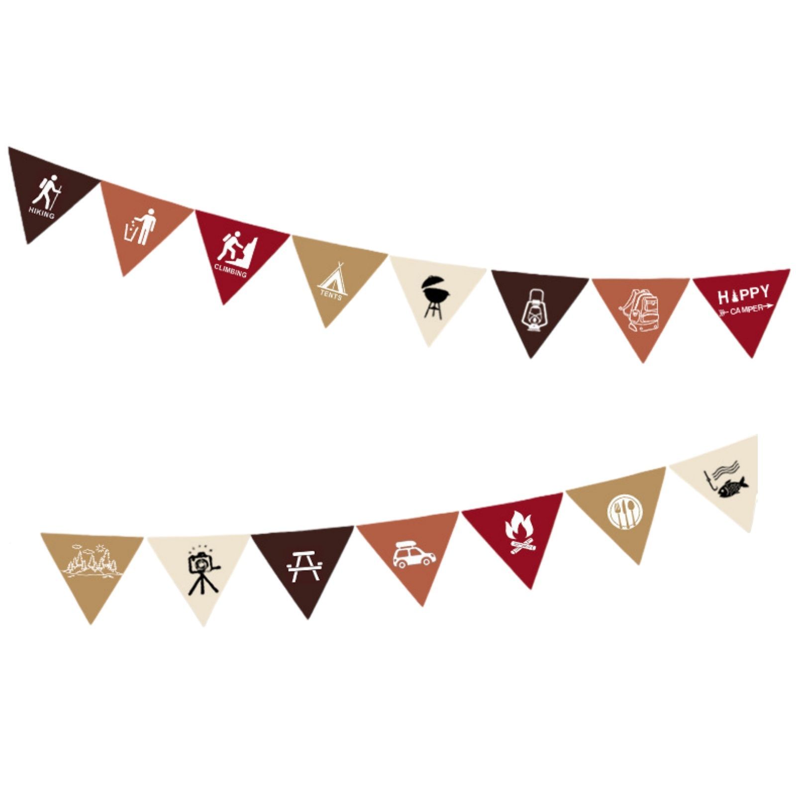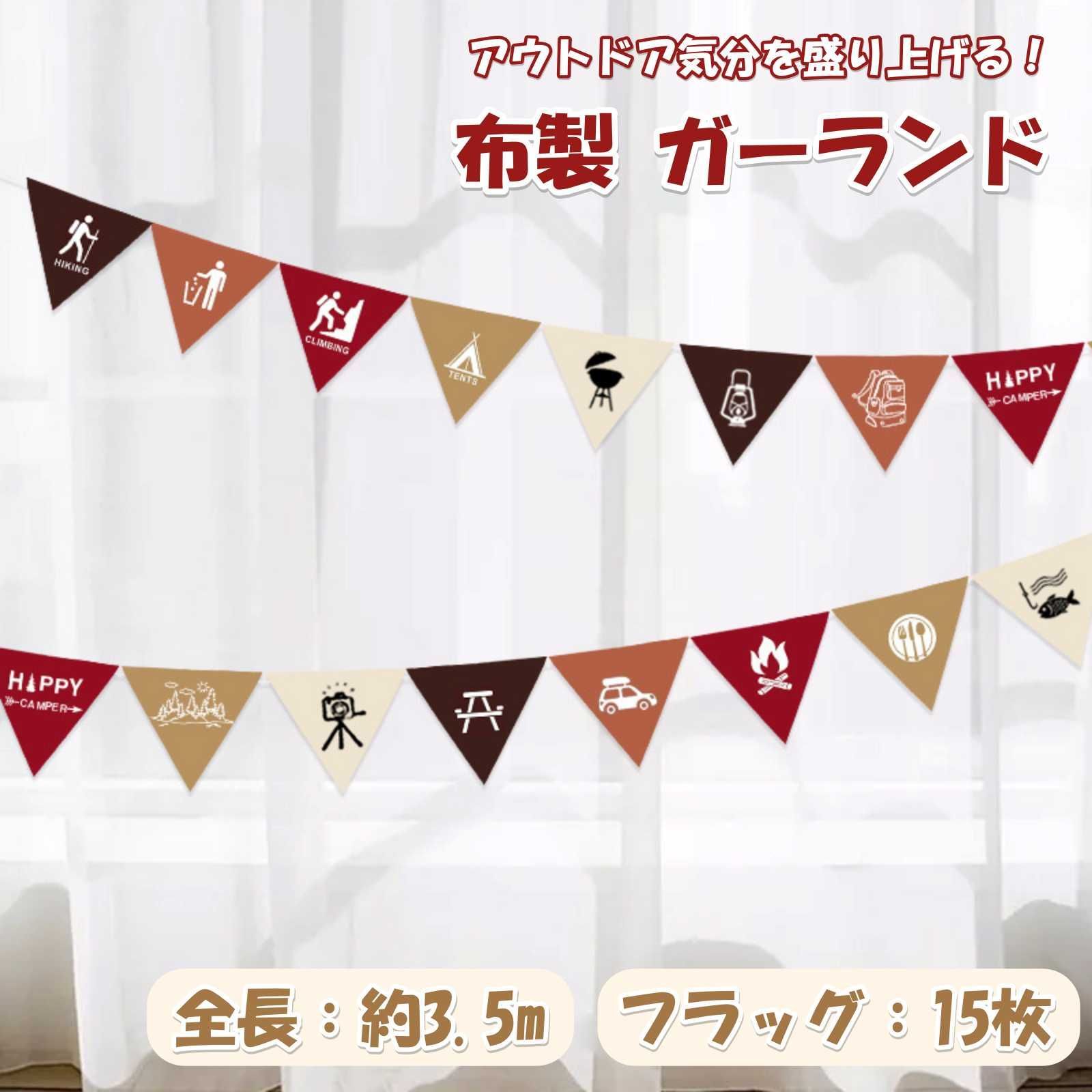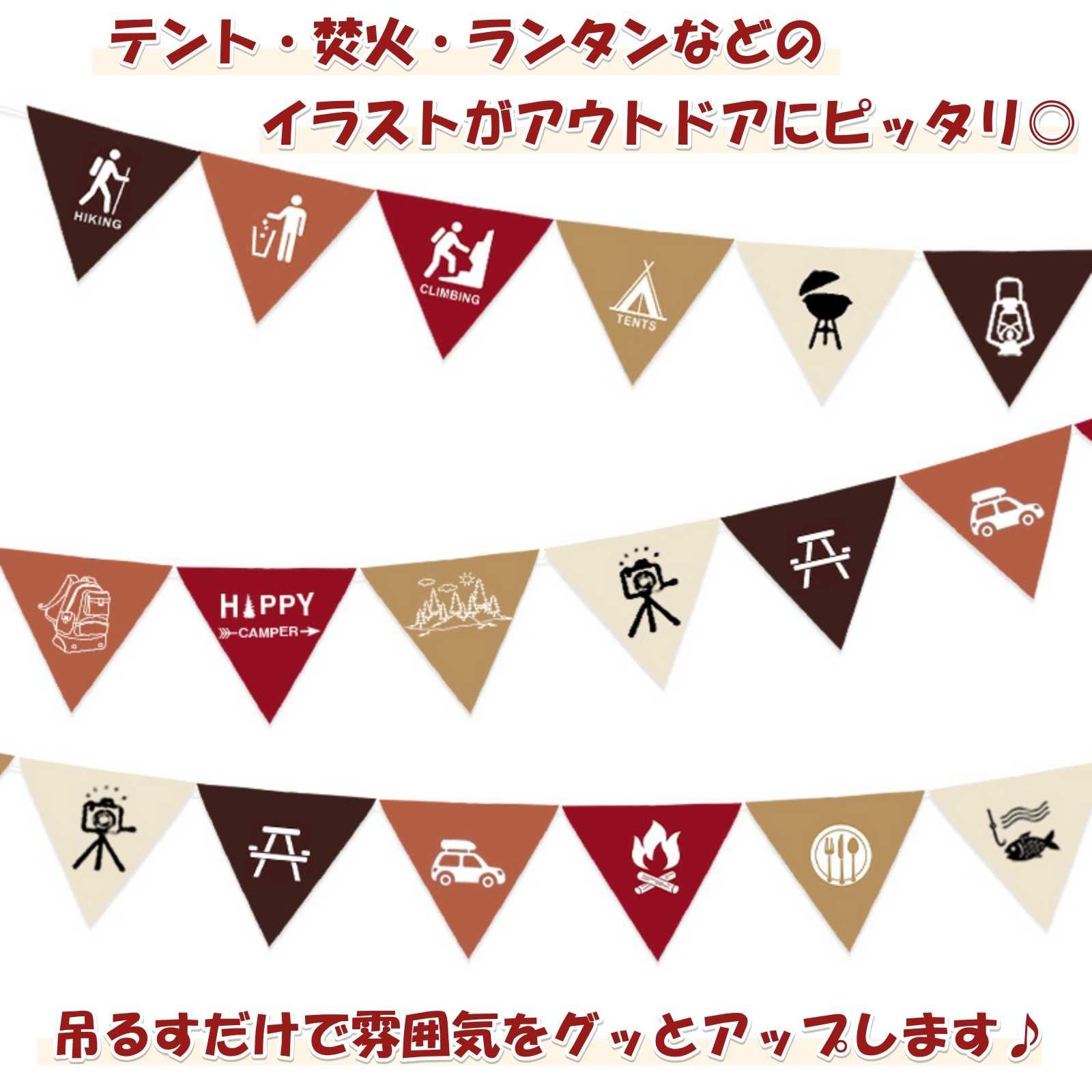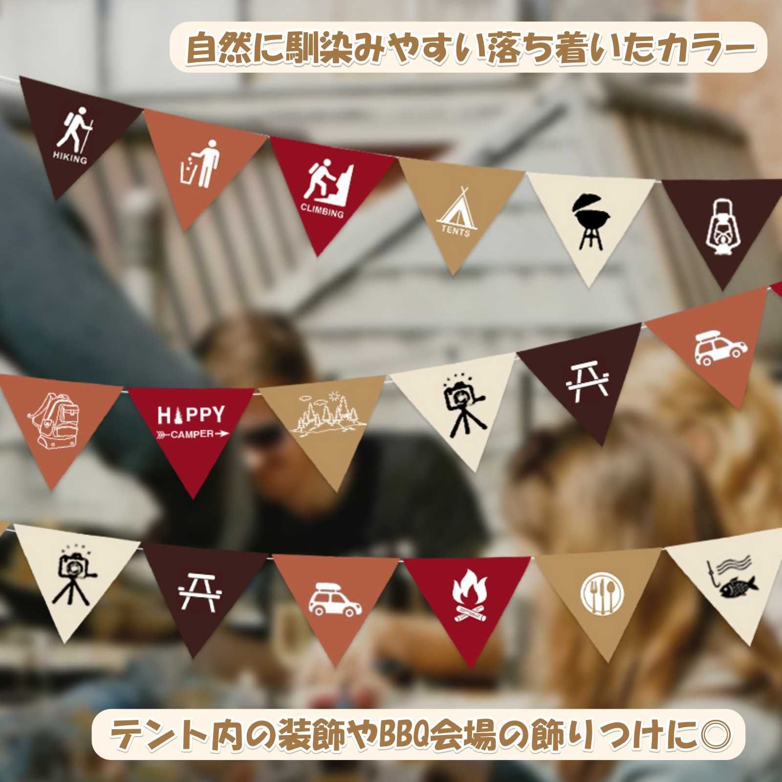 テント・焚火・ランタンなどのイラストがデザインされており、飾るだけでアウトドアの雰囲気をグッとアップするアイテムです♪
