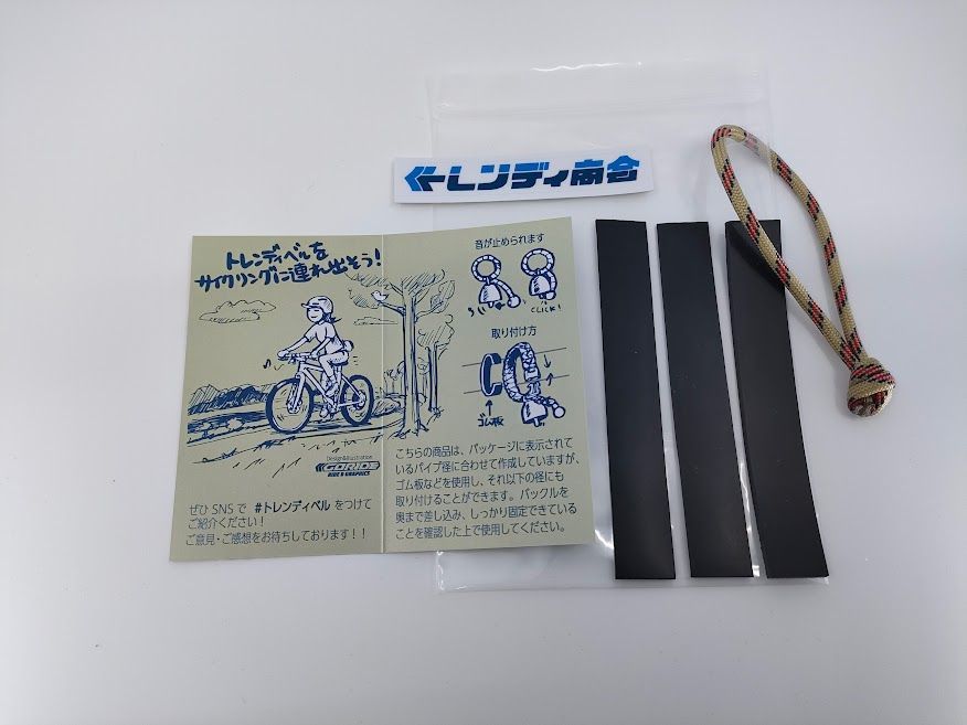 ゴム板(0.5mm、1.0mm、2.0mm)が付属しますので、滑り止めや取り付け場所の径に合わせての調整用としてお使い下さい。大きめのサイズを選んで頂き、バーテープやケーブル、ホース類を巻き込んで固定しても良いかと思います。