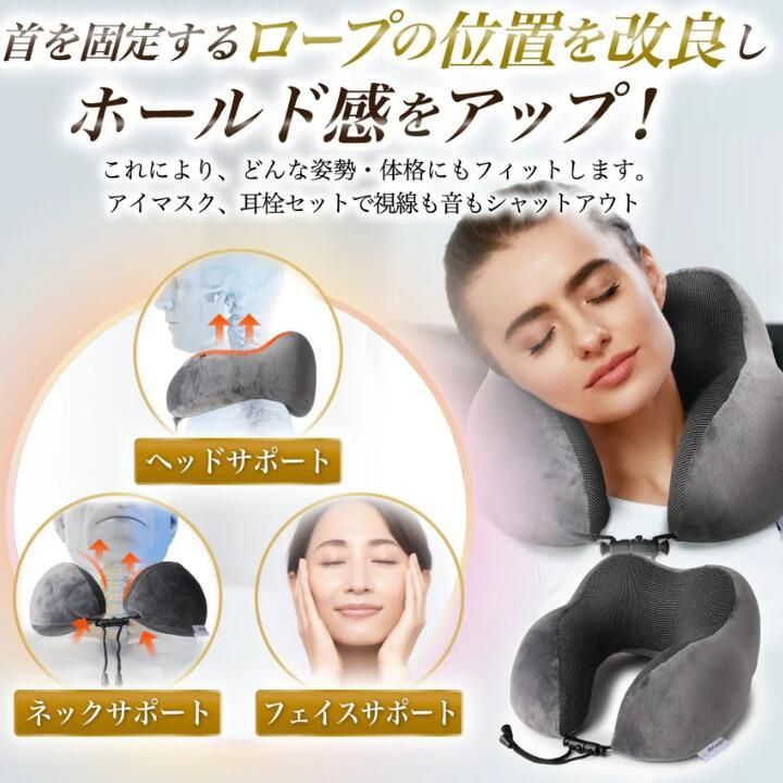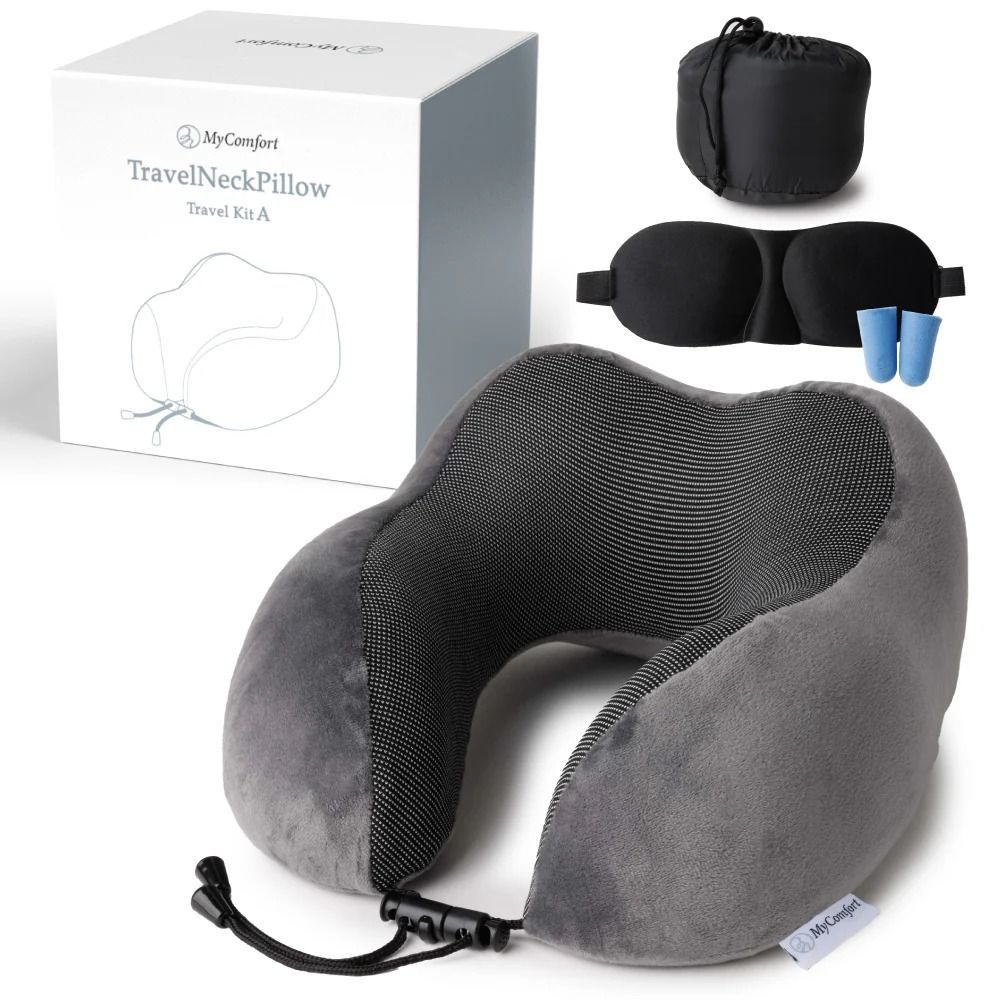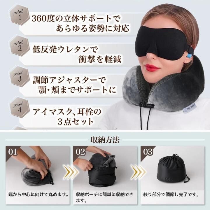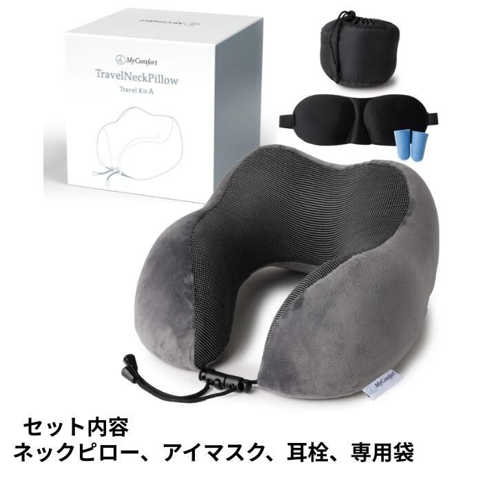 トラベルネックピロー 4点セット Travel Neck Pillow MyComfort アイマスク 耳栓 旅 電車 飛行機 首 枕