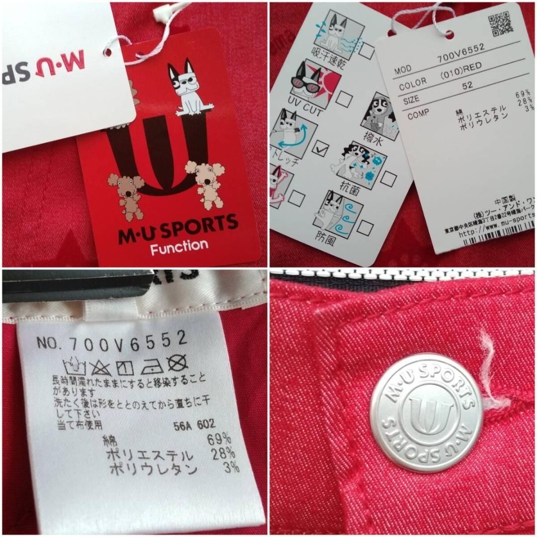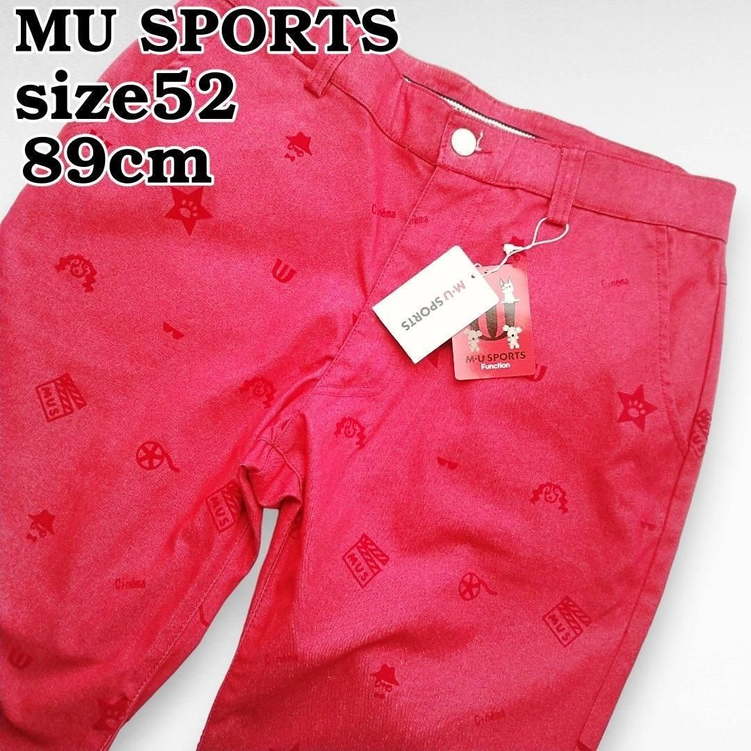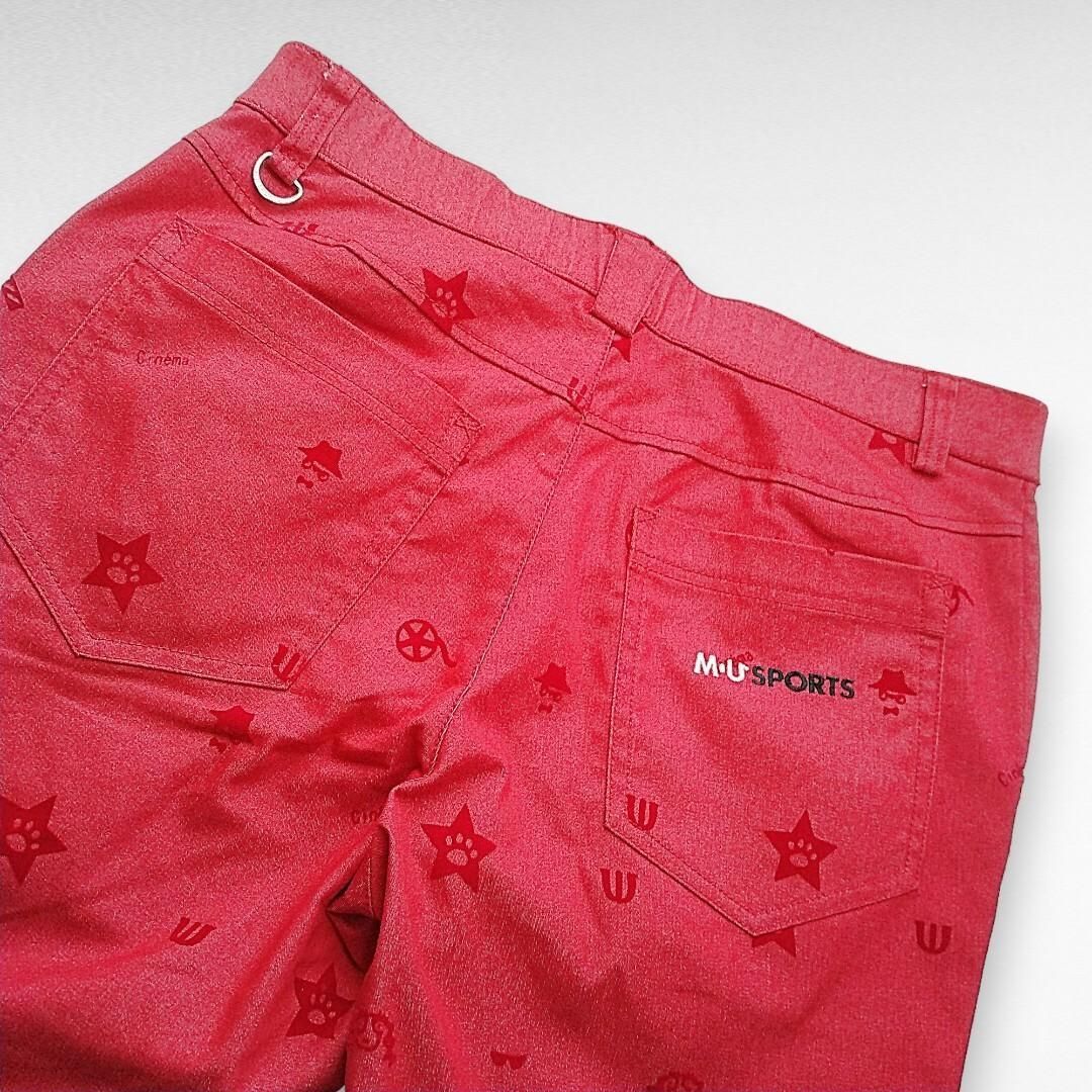 未使用 ストレッチゴルフパンツ MU SPORTS メンズ52 89㎝ MUスポーツ フロッキープリント 赤 L相当 240712-10