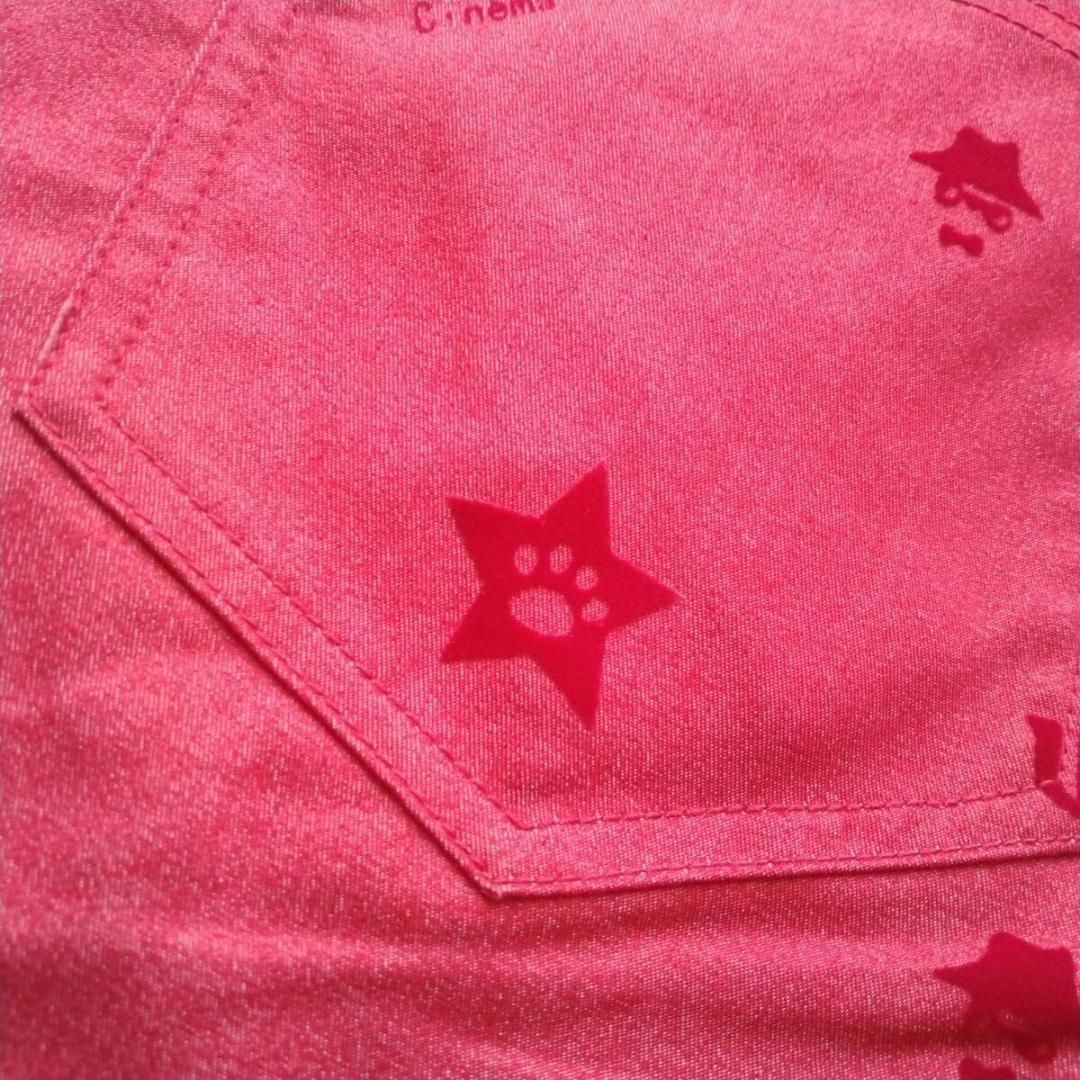 ブランドアイコンや星が立体的な発泡プリントで描かれた、非常にデザイン性の高い一本です。