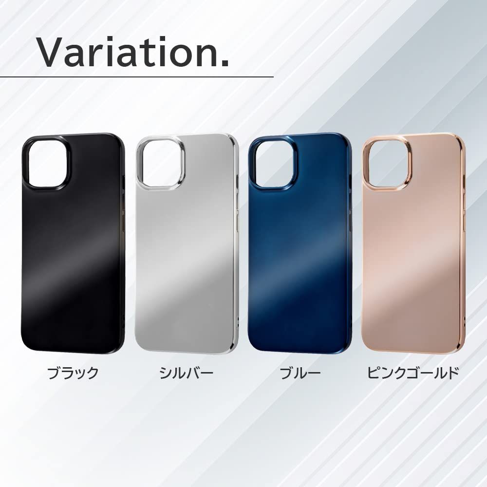 ミラーのように光を反射するメタリック加工を施したケース。ソフトな素材で衝撃をやわらげ、グリップ感も抜群。カメラレンズに傷が付きにくい。側面全周クッション構造。ボタンやスピーカー穴まで保護しホコリが入りにくい。画面を下向きに置いても傷が付きにくい。