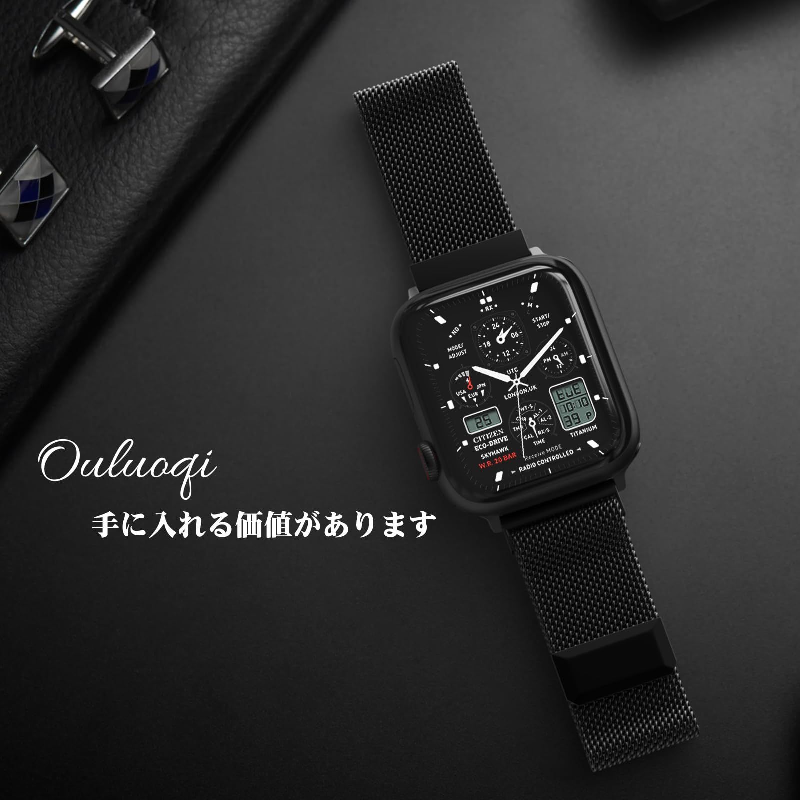 [OULUOQI] アップルウォッチ用のバンド コンパチブル 49mm 46mm 45mm 44mm 42mm 41mm 40mm 38mm ステンレス ベルト 長さ調節 男女兼用 マグネット 留め金 メッシュ 通気 Watch Series 11/10/9/8/7/6/5/4/SE3/SE2/Ultra3 に対応
