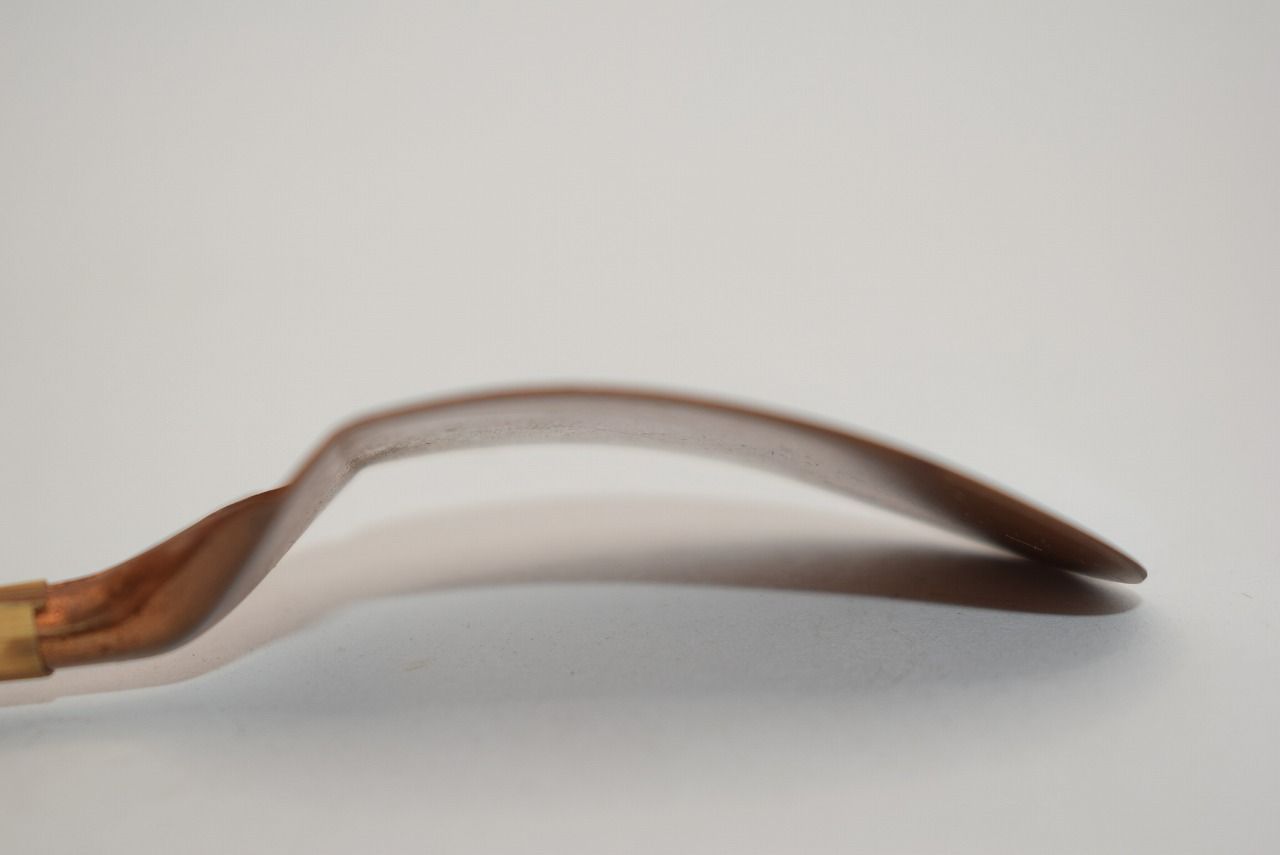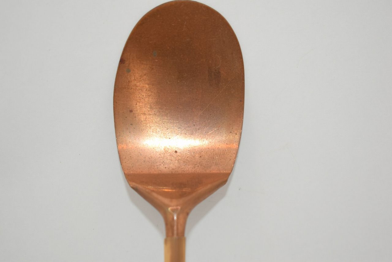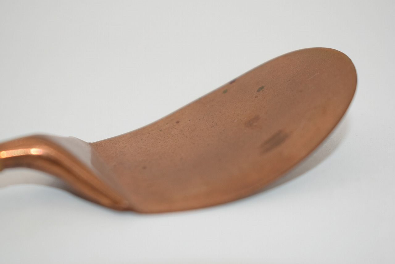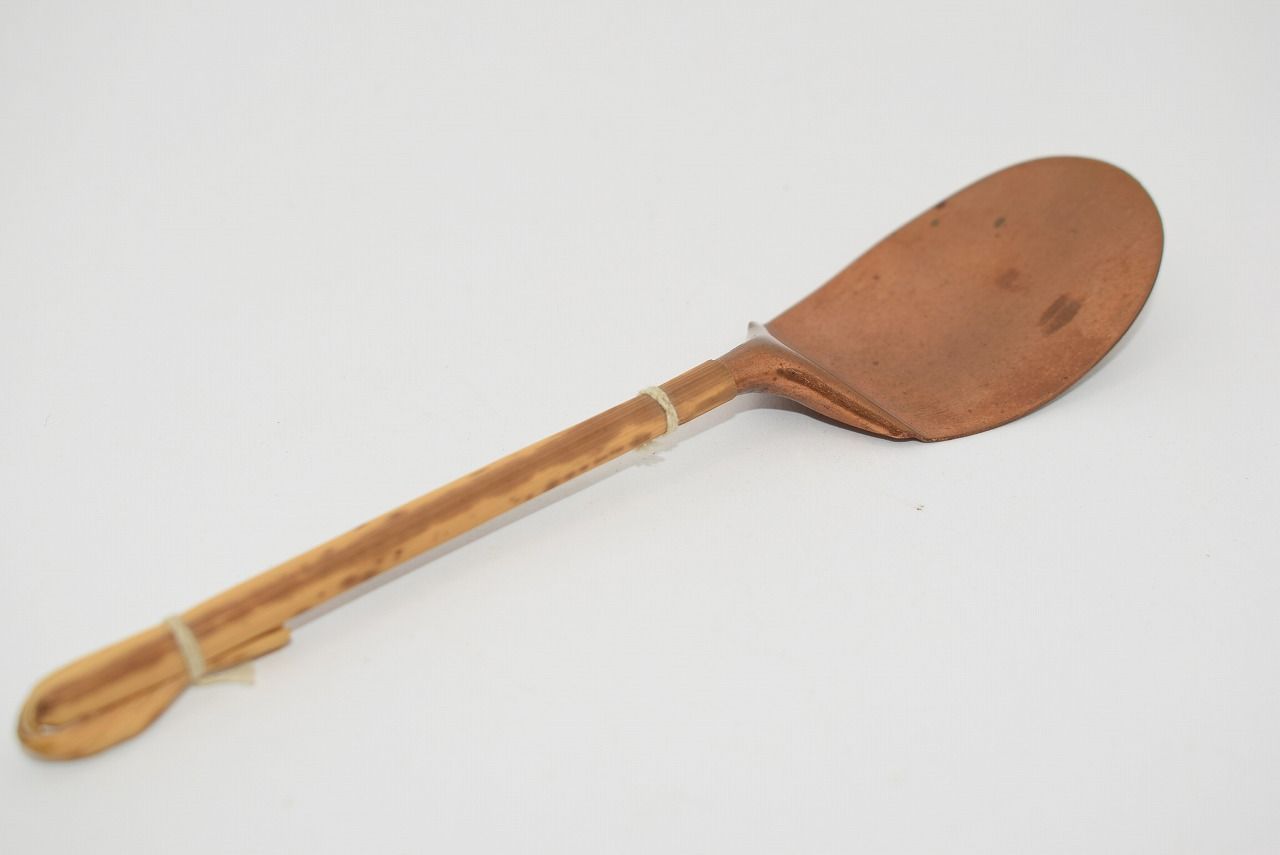 茶道具 灰押 小判 銅製 灰匙 茶道 (5) 10-9010-05 3.5×14.5cm 高さ1.6cm 汚れ、錆、擦れはありますが、本体はしっかりしています、お稽古にお使いになるには差し支えありません。