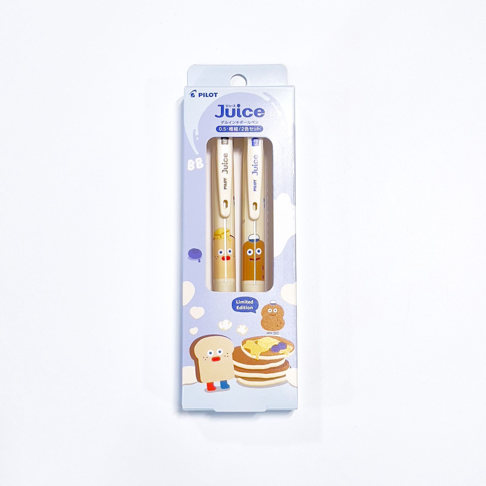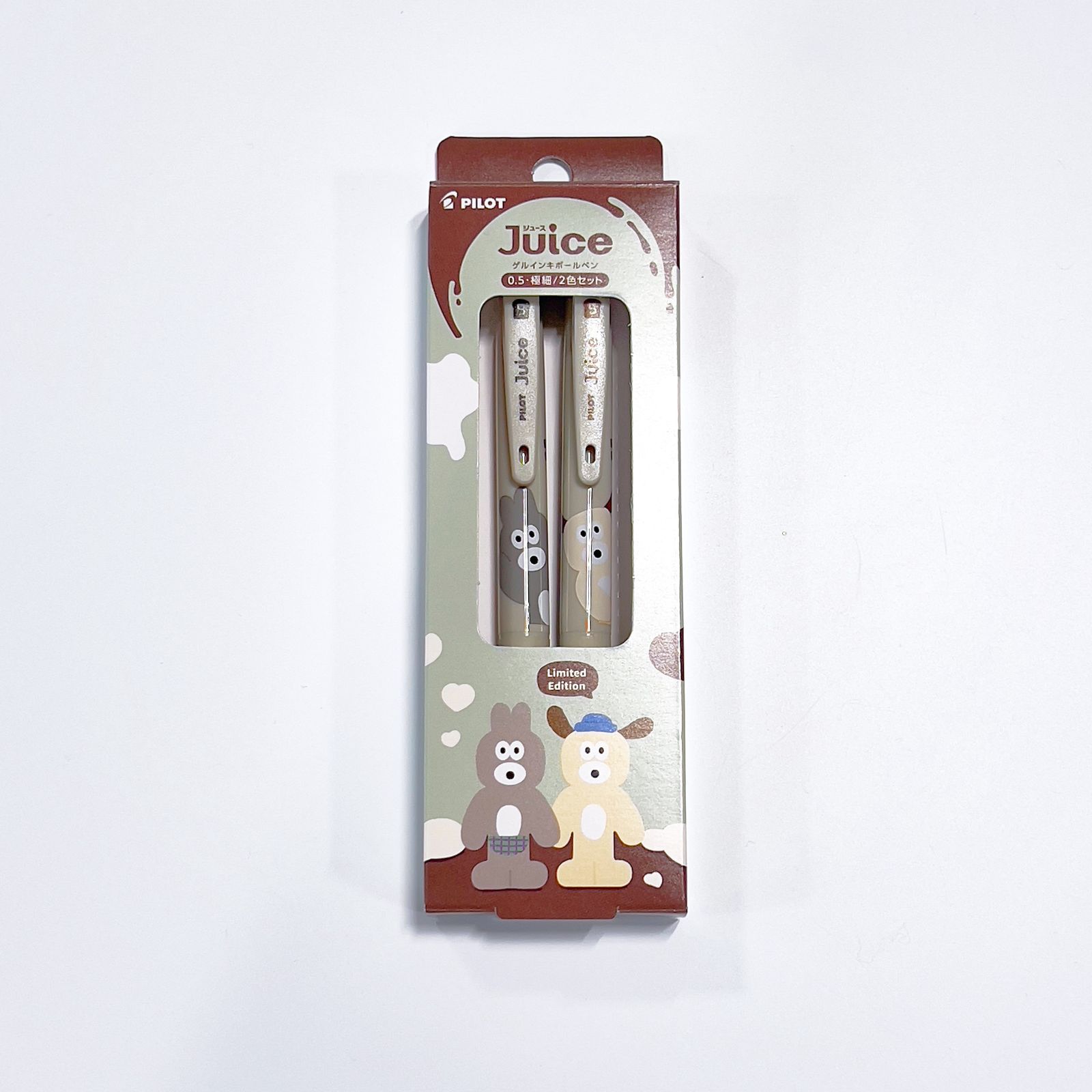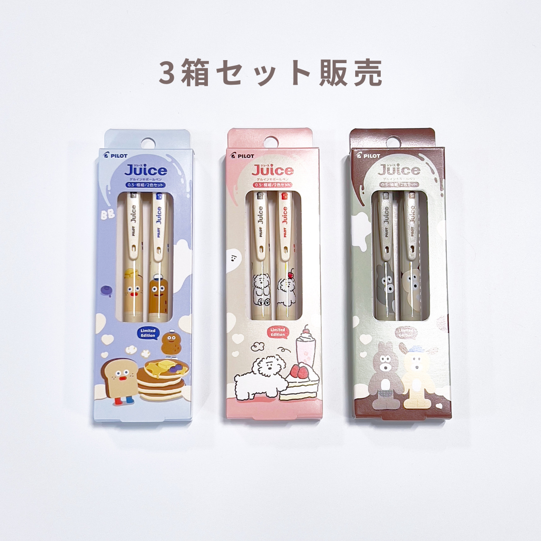 韓国発の人気キャラクター「BRUNCH BROTHER」とコラボレーションしたゲルインキボールペン「ジュース」の2色セットです。 なめらかな書き心地と鮮やかな発色が特長のボールペンに、かわいいキャラクターがデザインされています。 パッケージを並べると絵柄が繋がる、遊び心のあるデザインが魅力です。