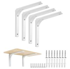 【寸法】 L1 300mm×L2 100mm×幅38mm×厚み4.5mm 【耐荷重】約55kg 【皿穴数 (天板側×壁側)】3/3ヶ所 【付属ビス】皿タッピング 5×45(壁側) 3本、皿タッピング 5×16(天板側) 3本 【カラー】ツヤ消しホワイト(W) 空間を広く使用でき、目立ちにくい設計のカウンターブラケット棚受けです。 br 天板側(L1)と壁側(L2)の寸法比率が約3:1でスタイリッシュでスリムな設計です。 br 板厚は4.5mmで補強桟付で強度がUPした壁付ブラケットです。 【用途】キッチンカウンター、洗面カウンター、対面カウンター、デスクカウンター、陳列棚、棚受など