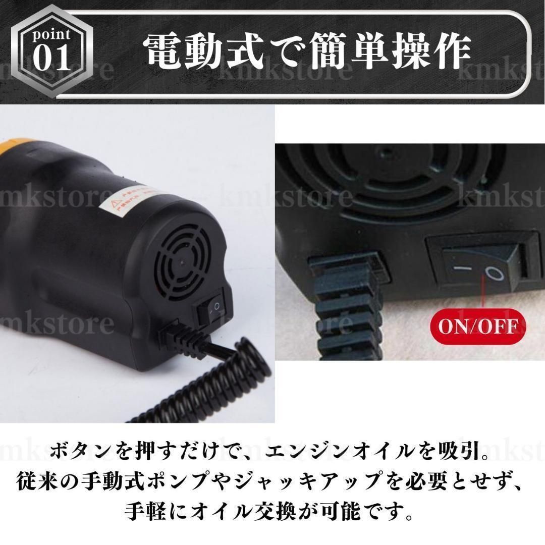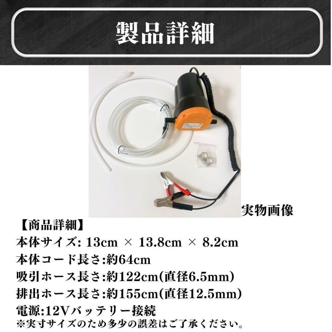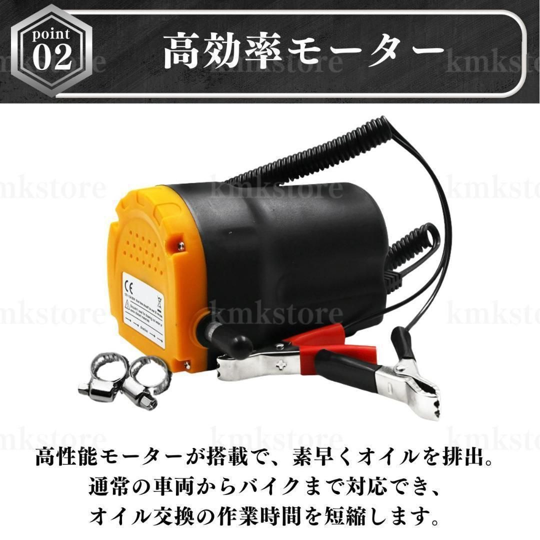 電動式オイルチェンジャー 自動 オイル交換 ポンプ 12Vバッテリー ポータブル チューブ ホース 自動車 バイク 船 エンジン ディーゼル