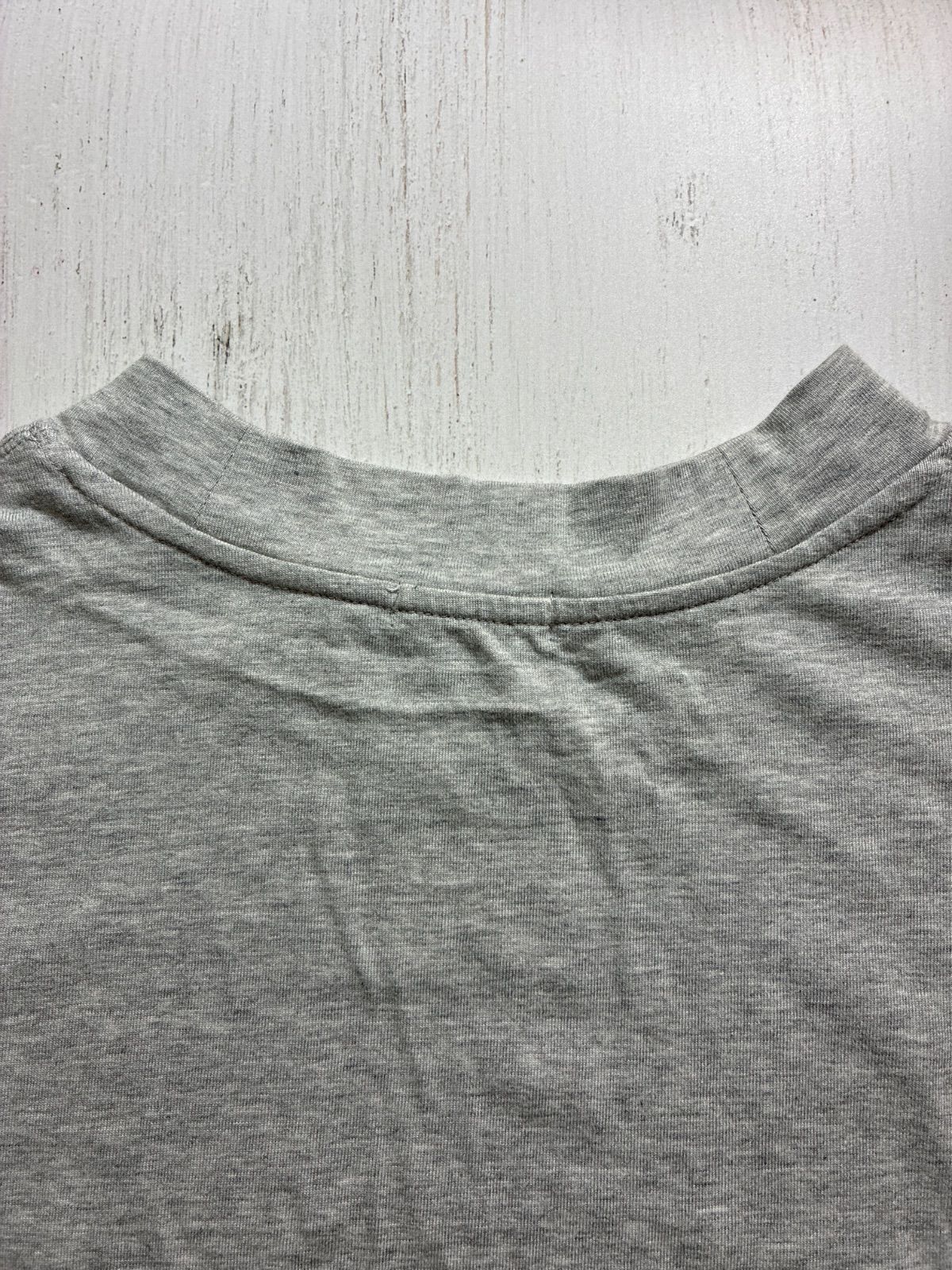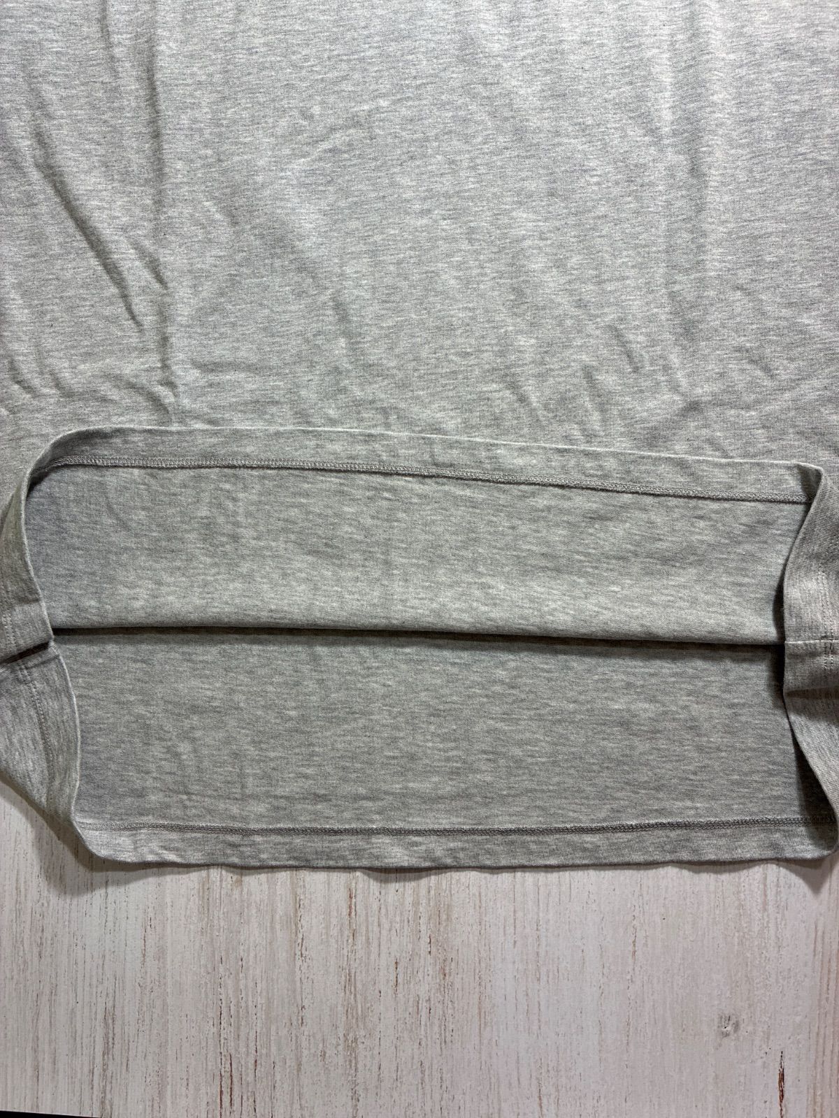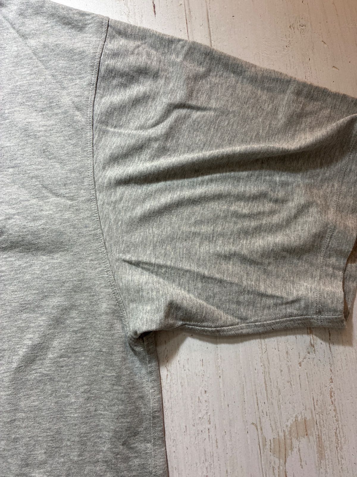 ・このTシャツ最大の魅力は、なんといってもその絶妙なシルエット。たっぷりと取られた身幅と肩が自然に落ちるドロップショルダー、そして気になる二の腕を完全にカバーしてくれる長めの5分袖デザインが特徴です。