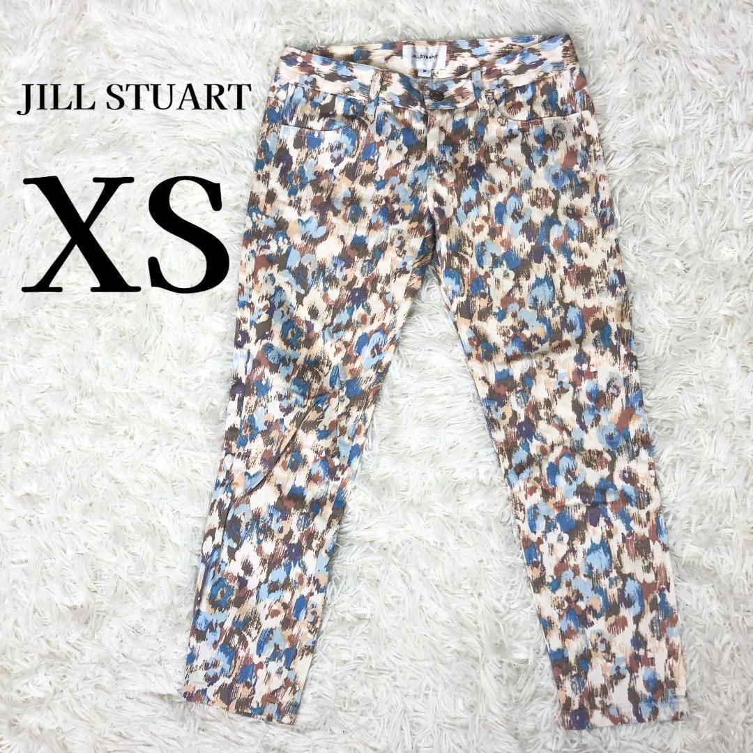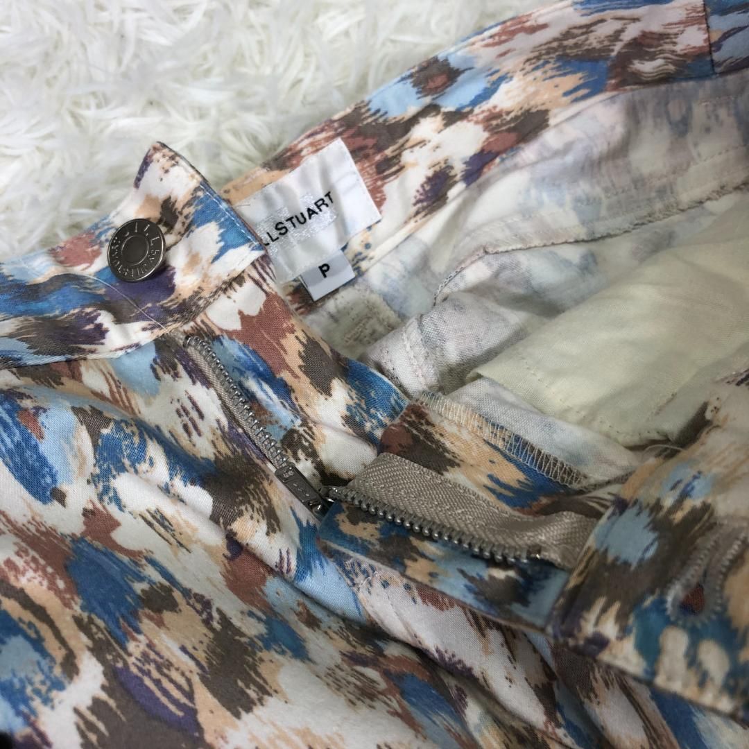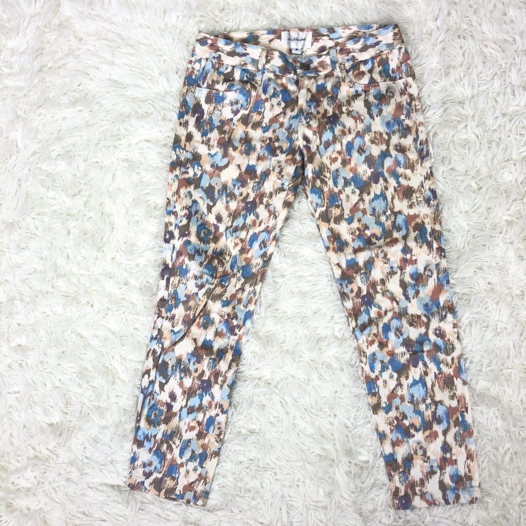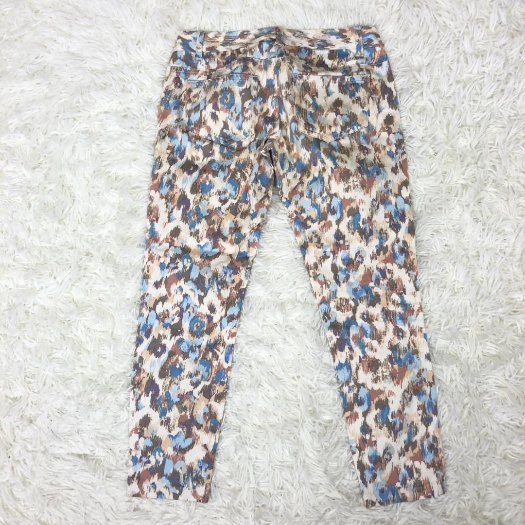 ブラウン、ブルー、ベージュなどの総柄、スキニーパンツです。ポケット4つ付きです。ストレッチが効いています。
