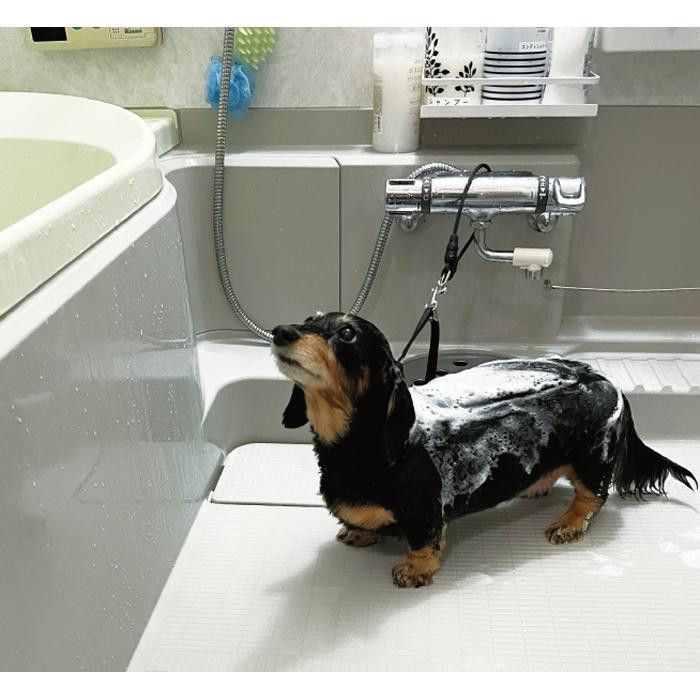 シャンプー中、ドッグバスからペットが飛び出すのを防ぎます。