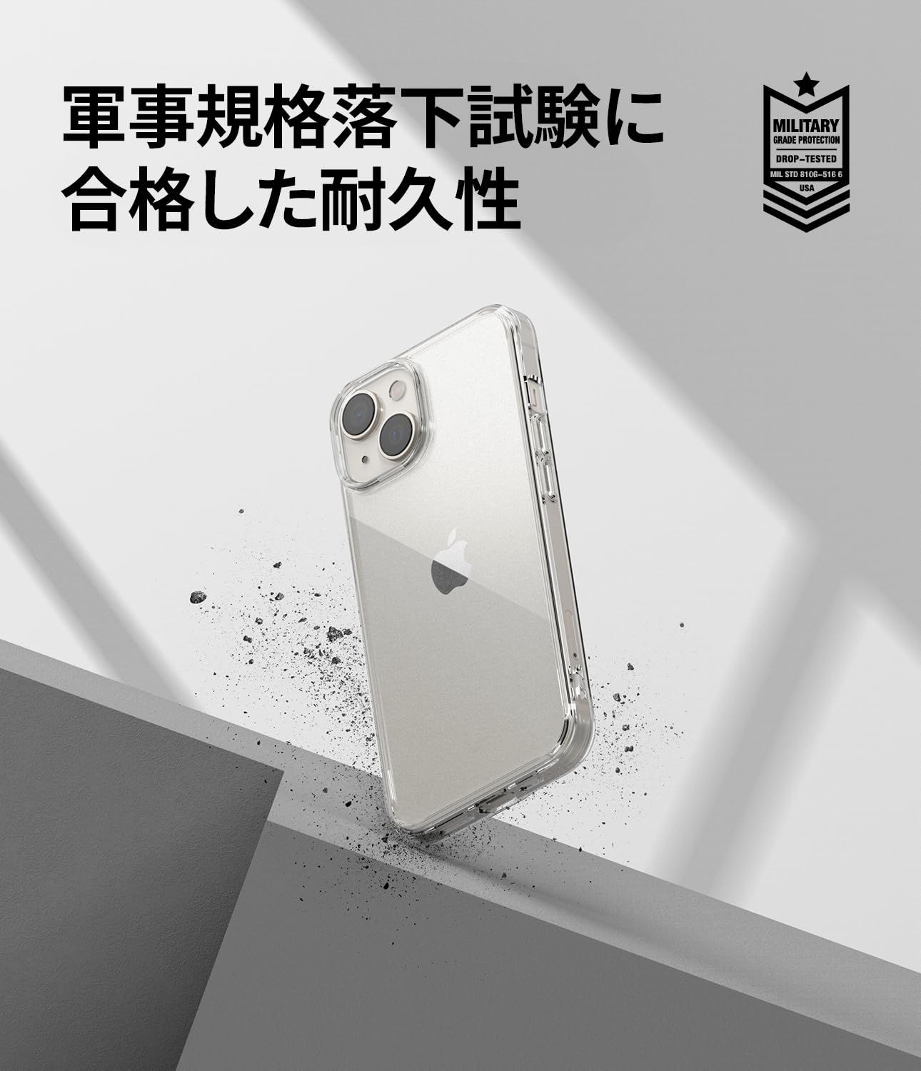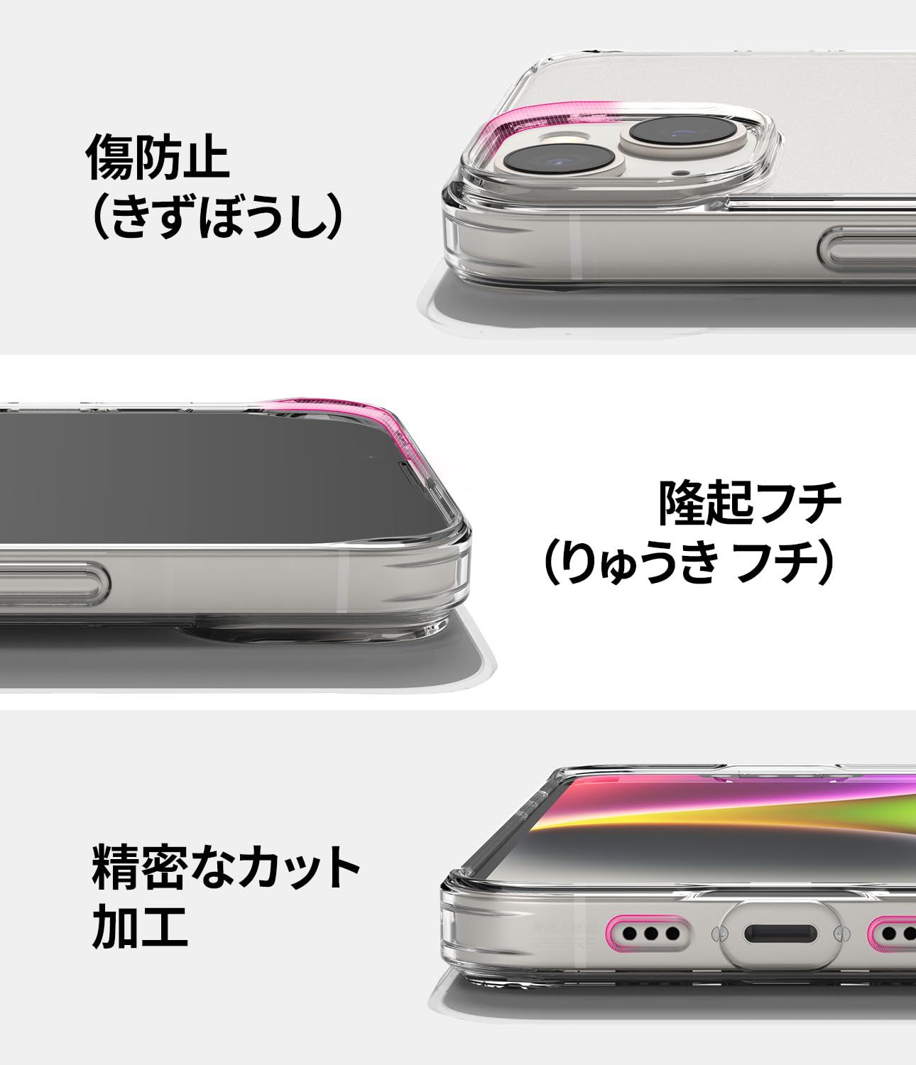 【エアスペース設計】衝撃を吸収する角部分のエアスペース設計とクショニングを考慮した高弾性素材技術でスマートフォンを強力に保護します。