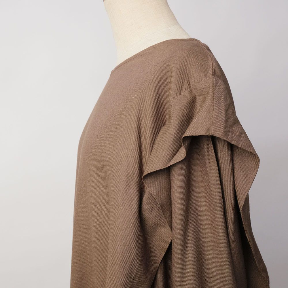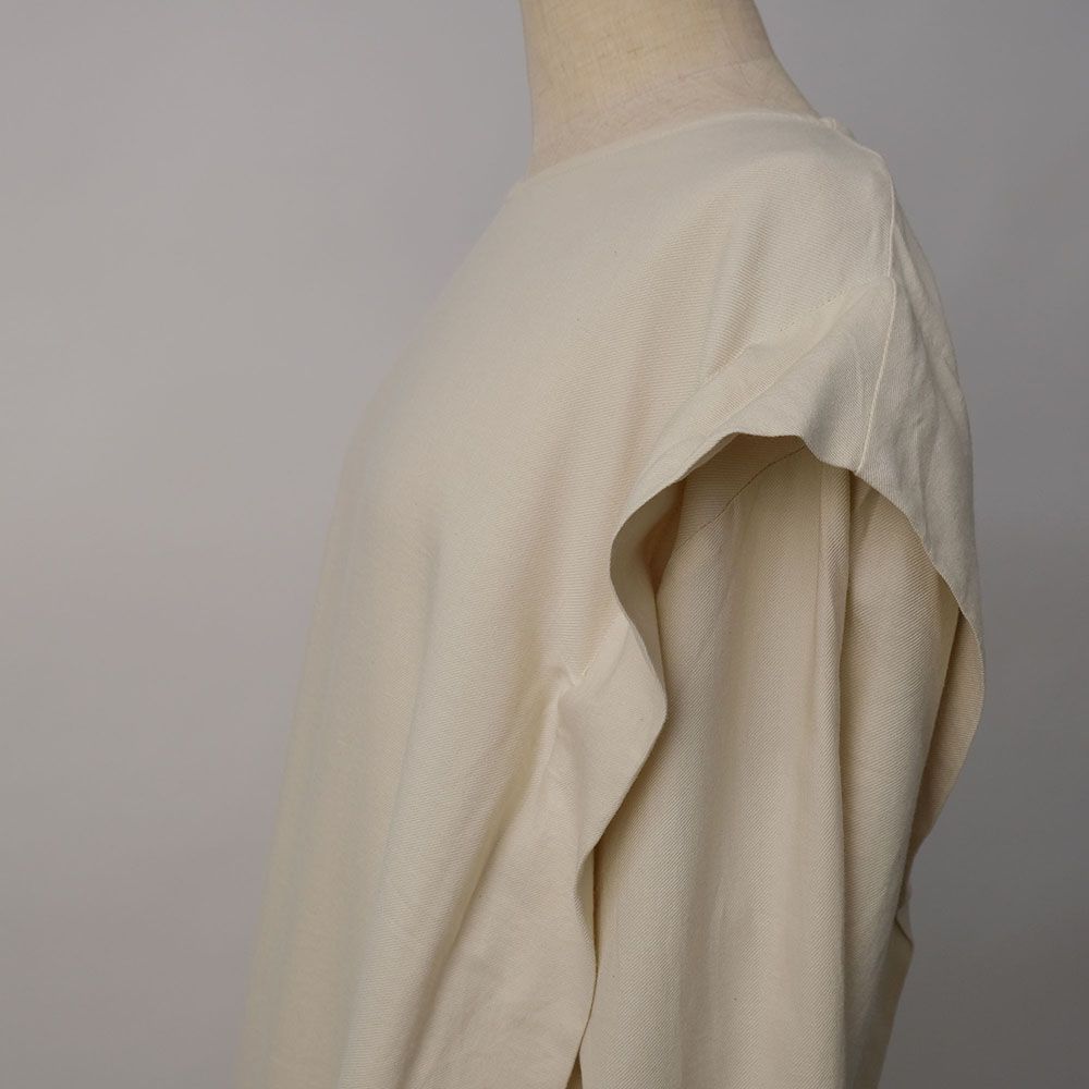 さらりとした落ち感があるコットンレーヨンのツイル織りの生地を使い、肩にタックを入れてポイントを持たせました。