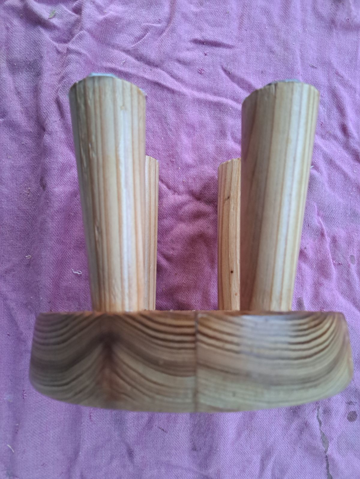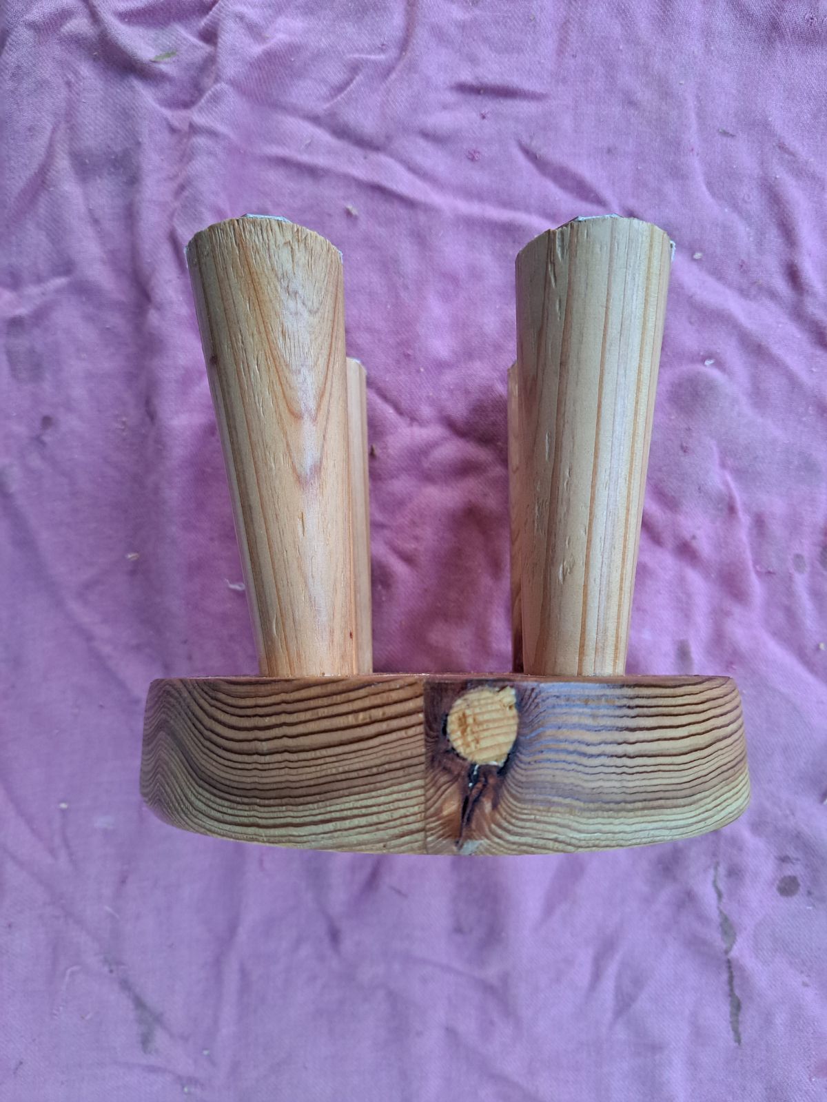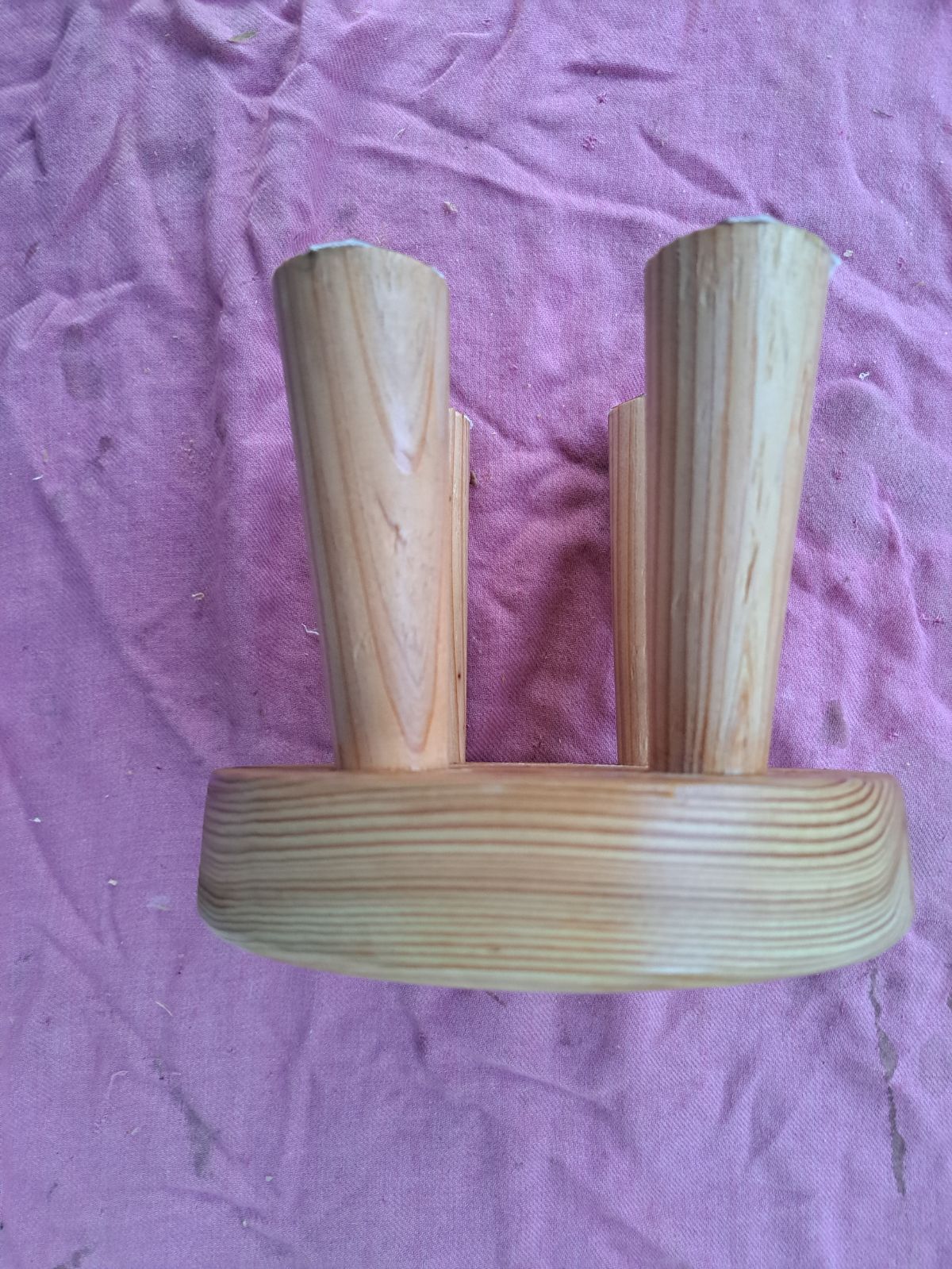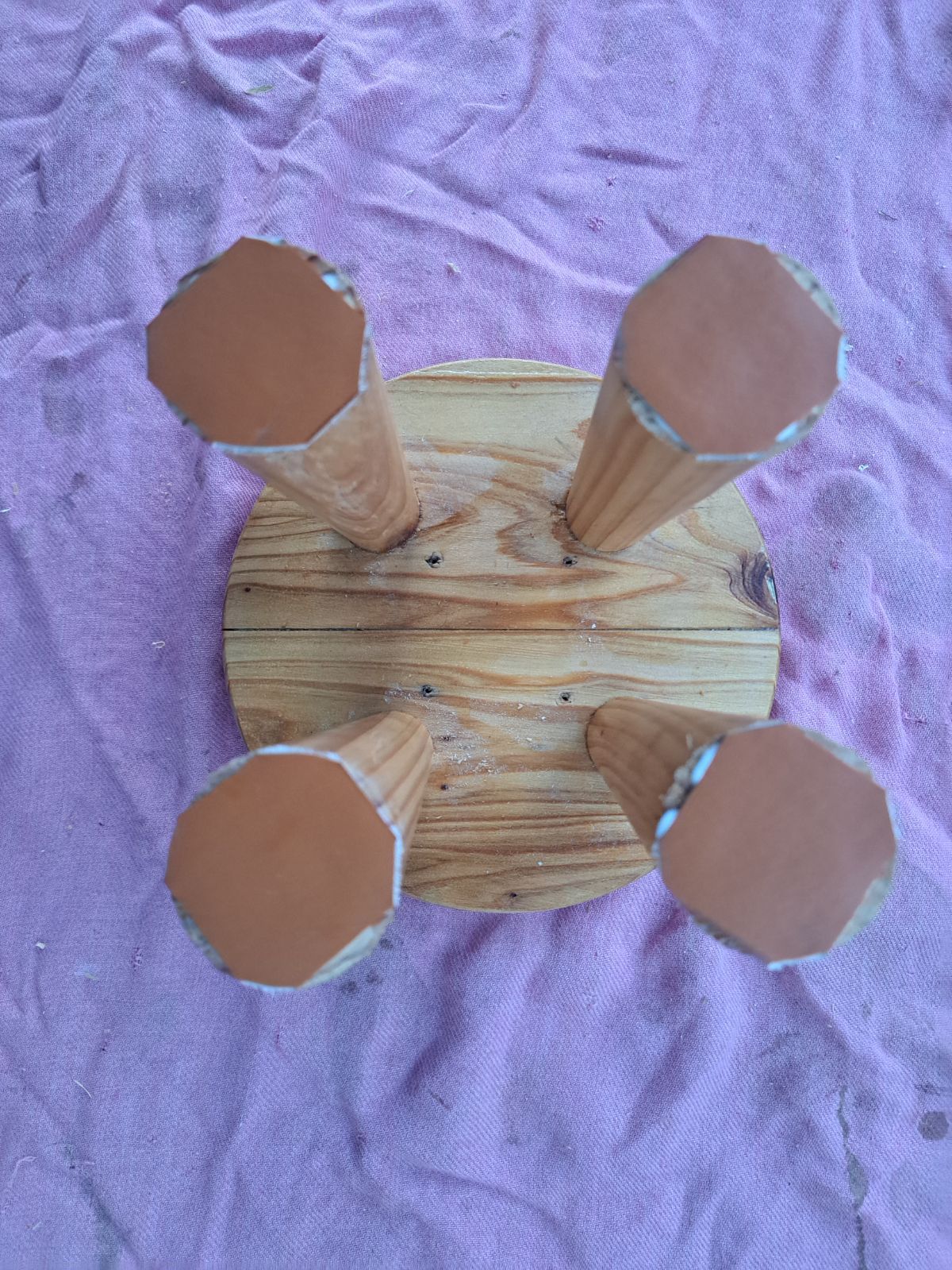 趣味で木工してます。 木工作業で出る廃材や端材を何かの形にと考え出来上がった作品です。 座面は杉板で直径178mm厚さ35mmです。 足は杉で通常と逆に末広型にして見ました。太い処の直径は40mmです。 座面の高さは150mm(およそです)仕上げはウレタン仕上げです。 ※発送前にはガラス面上でガタツキ調整して発送しますが設置環境が変われば多少ガタツキが出るかもしれませんが、その場合にはフェルト等貼り付けで調整してください。 玄関 屋内下駄箱の上等インテリアに如何でしょうか?木製品なので雨の当たる所は苦手です。 素人の手作り品で廃材等の端材利用の為節や割れや釘抜き穴埋めや塗装むらや足の太さのばらつきはありますが、それも手作り感とご理解下さい。依って家具屋さんで見るような高級家具と比較されては困ります。 鉢植え ぬいぐるみ 小物雑貨等オシャレに飾ってお楽しみ下さい。 構造的には本格的ほぞ穴加工で組み立てていますが、目的以外の使用は避けて下さい。 がっちり太い材料で作っていますので子供椅子としてもお使い頂けます。