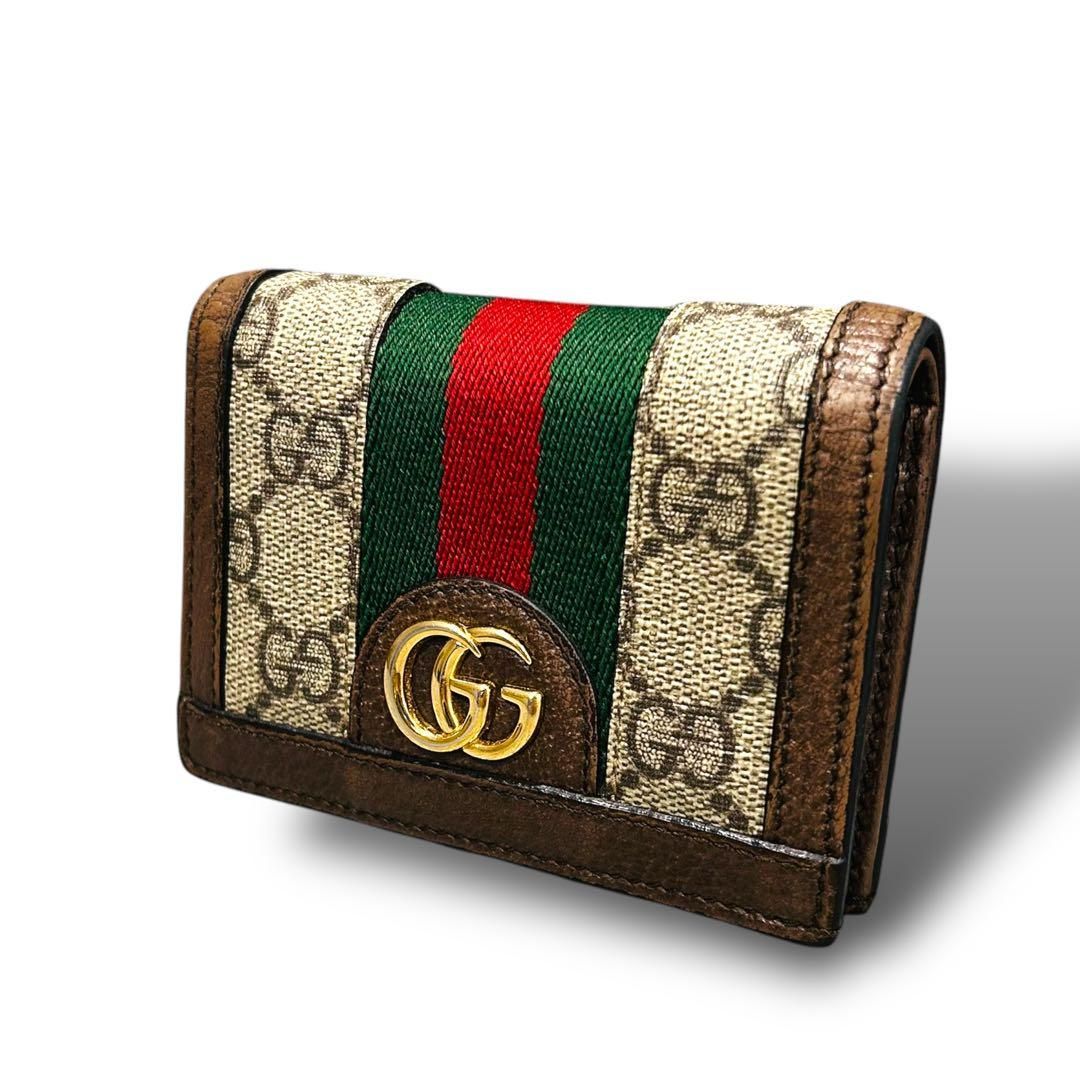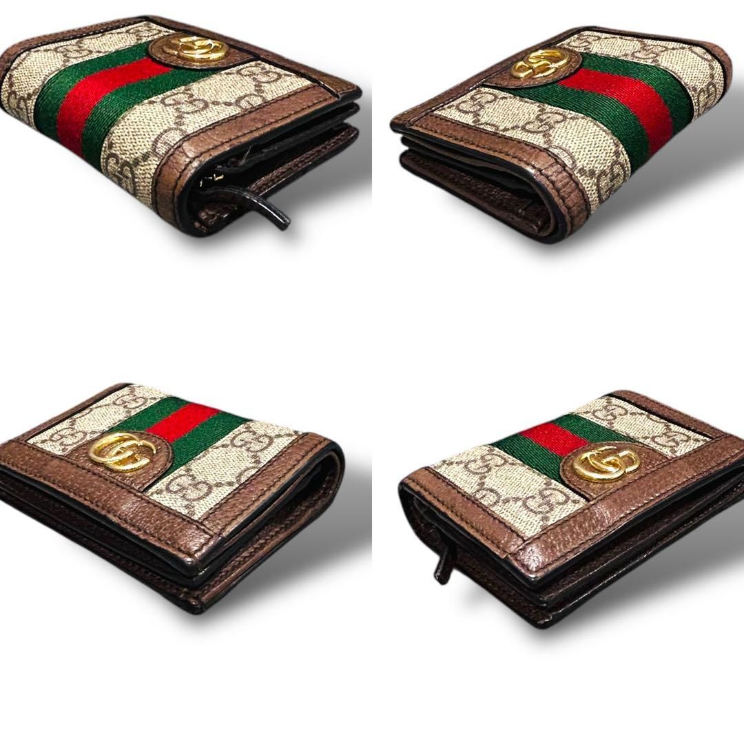 GUCCI グッチ レディース お洒落 お出掛け ブラウン シェリーライン レザー 普段使い 美品 コンパクト財布 折り財布 ヴィンテージ