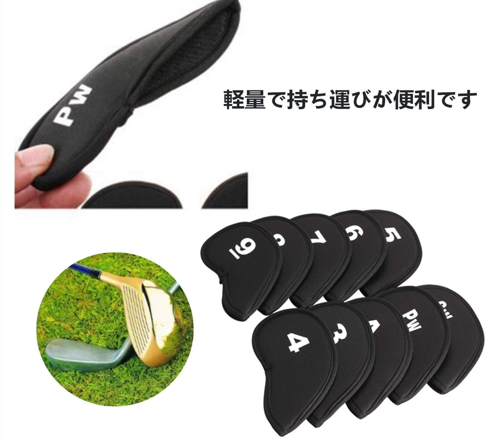 YFFSFDC ゴルフアイアンカバー ヘッドカバー 10枚入り(39、A、Pw、Sw)番号 保護カバー