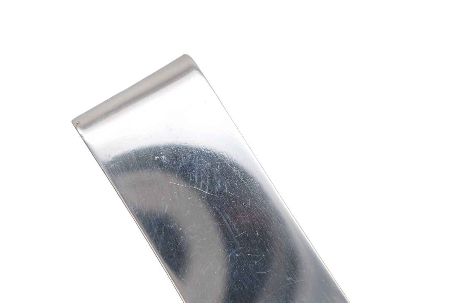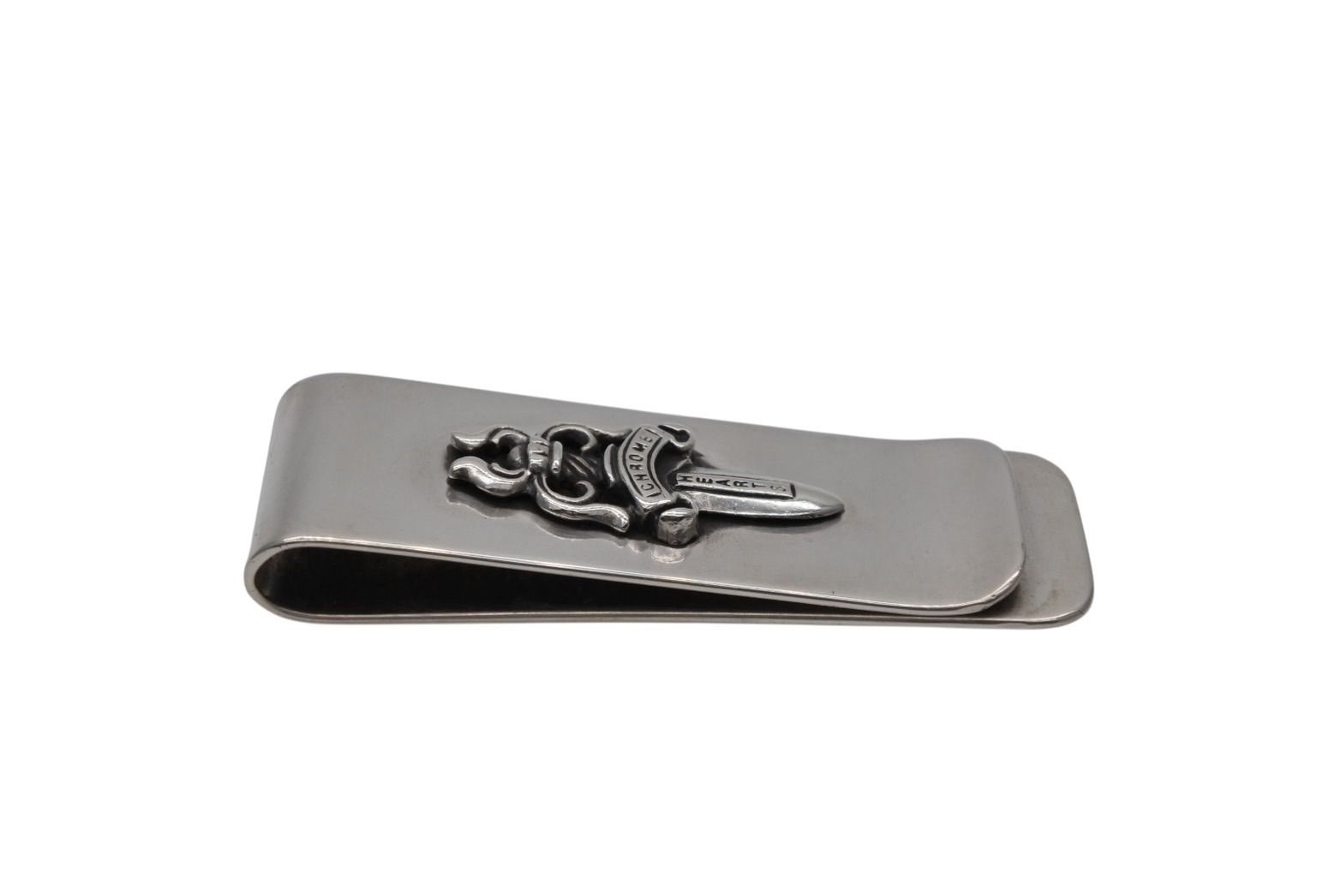 【説明】クロムハーツ 初期ダガー マネークリップ スモールです。シルバーマネークリップのフロントには初期ダガーのデザインが施されております。やや大きめなデザインで、紙幣だけでなく、クレジットカードやその他カード類も挟めます。スマートに紙幣をすぐに取り出せ、バッグを持たず身軽に手ぶらで出歩きたい方などにおすすめ。