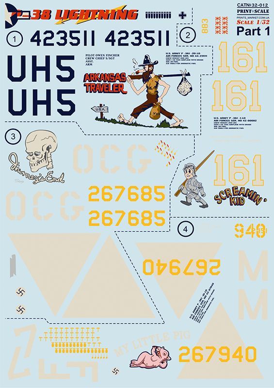 プリントスケール 32-012 1/32 P-38 ライトニング Part1 コンプリートセット