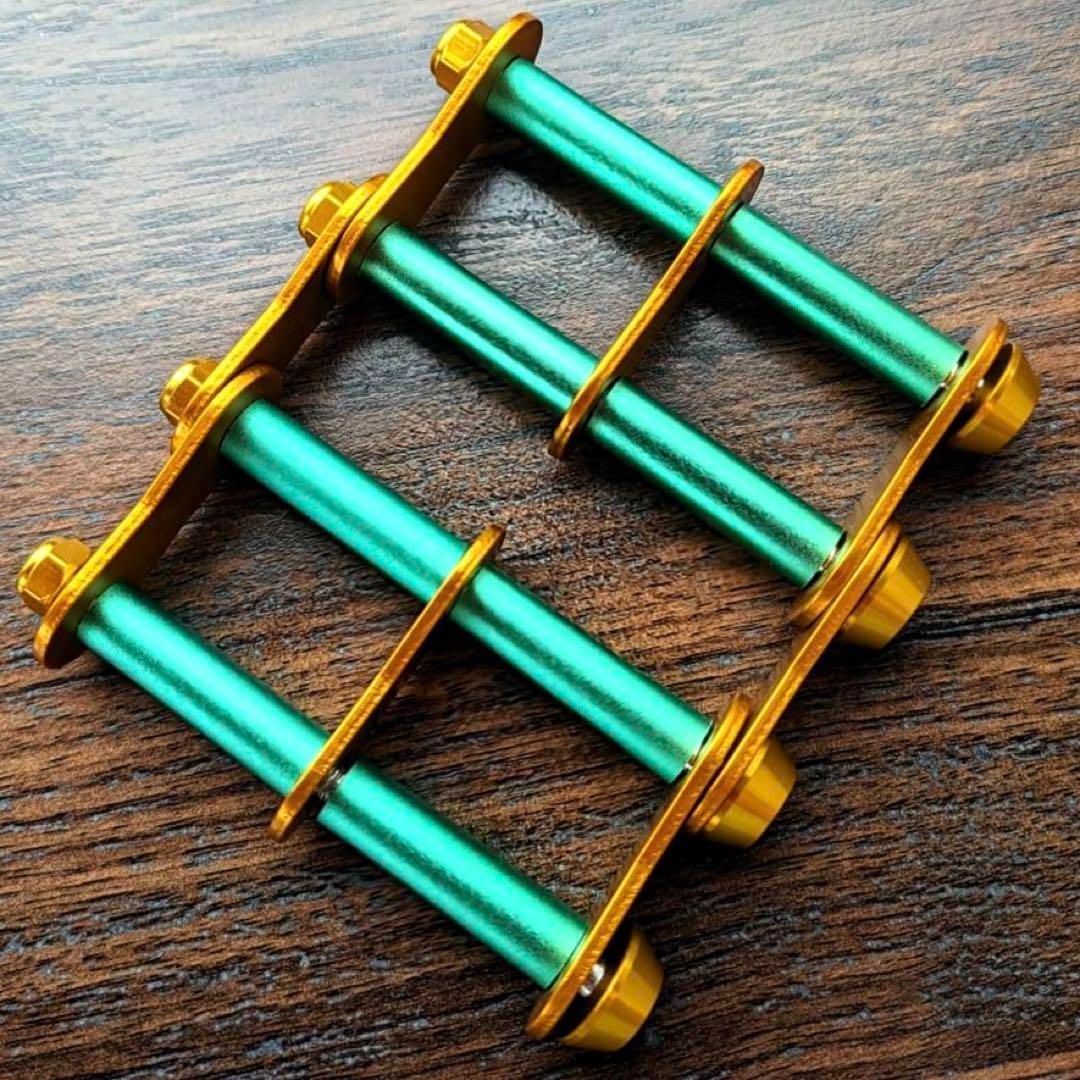 4連チェーン グリーン×ゴールド ニックスベルトループ対応 腰道具 腰道具 腰袋 カスタムチェーン ニックス風 タジマセフ バリスティック ハンマー差し ペンドラホルダー コーデュラ アルミ だるま金具 KNICKS風