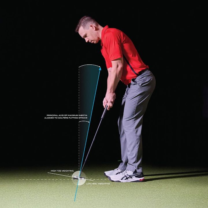 ストローク中の主軸とパターのバランスを一致させ、フェースのブレを最小限に抑制。