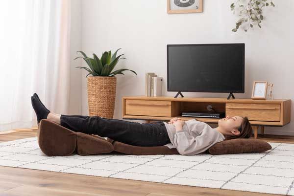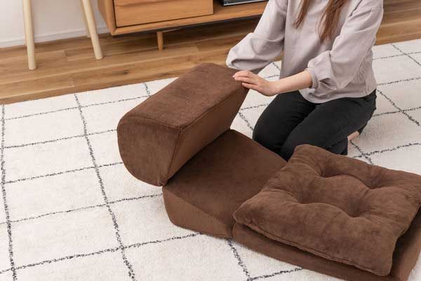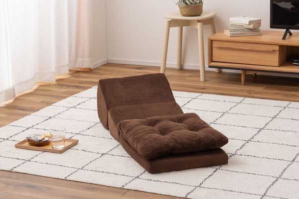 TV,座椅子,ロー,チェア,クッション,長座布団,リーズナブル,通販,背もたれ,定番,1人,ヘッドレスト,布,高級感,寝転び,昼寝,ローソファ,単色,折り畳み,こたつ座椅子,茶色