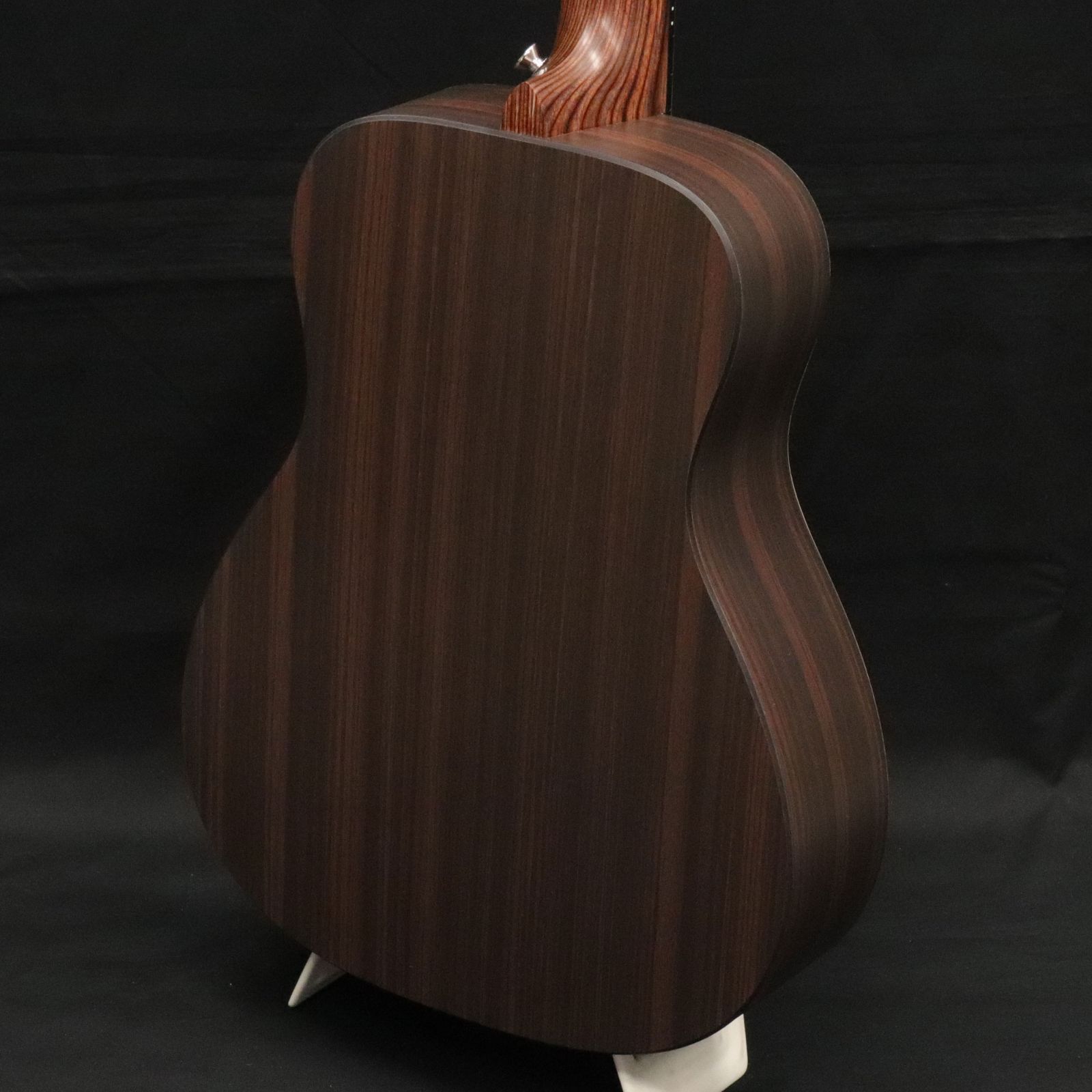 サイド&バックにはローズウッド柄のハイ・プレッシャー・ラミネート(HPL)材を使用し、サウンドホール周囲にはヘリンボーン模様がレーザー刻印されており、ピックガード付きで見た目もGoodなミニギターです。