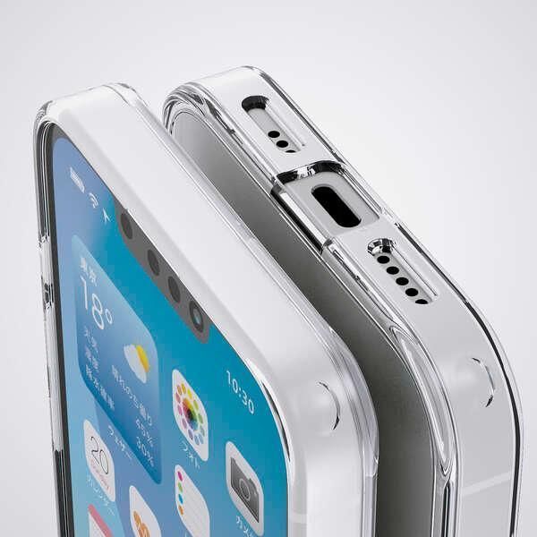 ■磁力装着タイプのワイヤレス充電器に対応した“MAGKEEP”シリーズ。側面には弾力性のあるTPU(熱可塑性ポリウレタン)素材を、背面には強じんで透明度の高いポリカーボネート素材を使用した、スリムなスタイルのハイブリッドケースです。