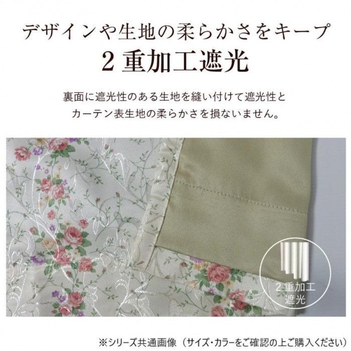届いてすぐに使える厚地カーテンです。デザインや生地の柔らかさをキープした2重加工遮光が施されています。