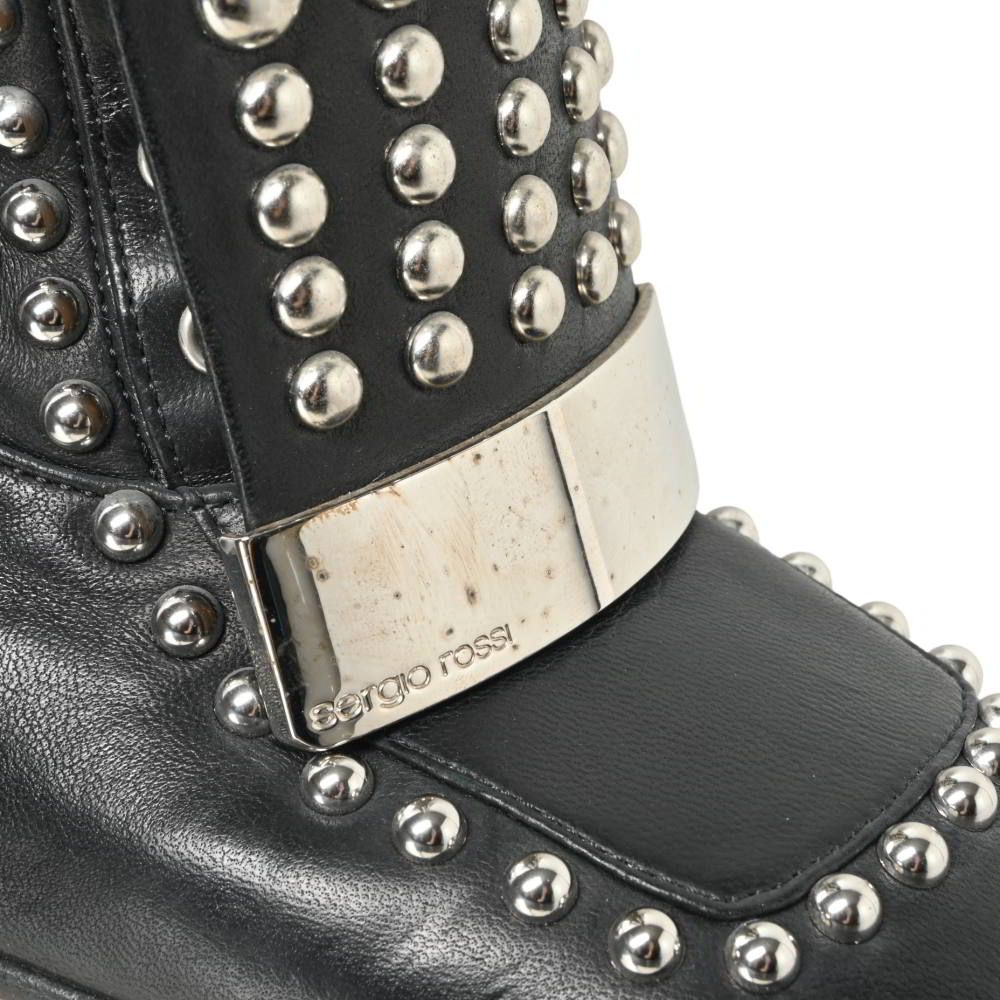 【商品名】:SERGIO ROSSI スタッズ レースアップ レザー ブーツ