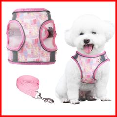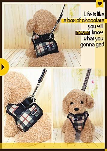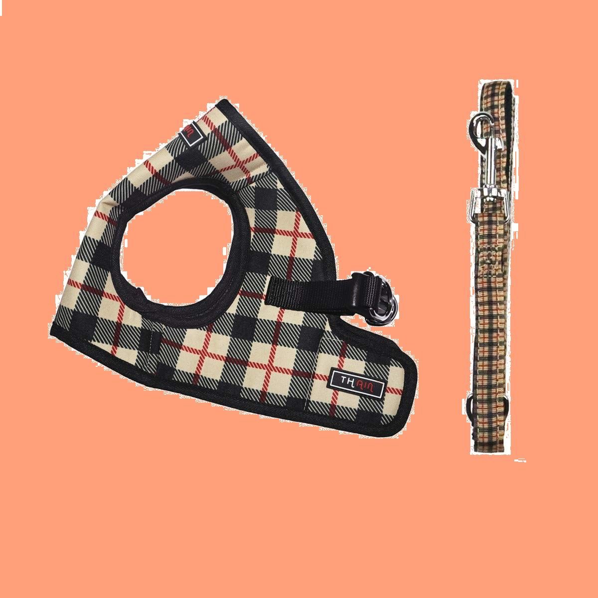 THAIN ハーネス&リードセット 5-8kgs 中小型犬 中型犬の子犬 ハーネス チェック ベストハーネス 犬 抜けない 犬のハーネス 格子縞 中型犬 ハーネス 胴輪 中型犬 メッシュ ハーネス 犬用 リード ペット用品(L)