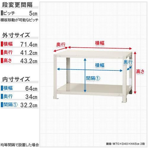前方の支柱穴が少なく、穴を小さくしたスマートなスチールラックです。中段の変更が簡単なスチールラックです。